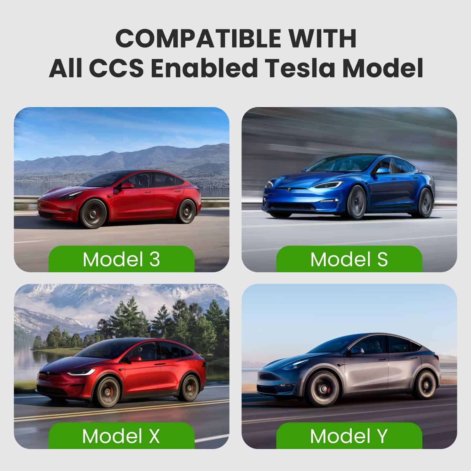 El adaptador CCS a Tesla es compatible con modelos de Tesla que admiten solo CCS. Este adaptador de carga rápida CCS es el mejor ajuste para los modelos de Tesla: Model S, X, Y, 3. Este cargador CSS para Tesla es compatible con el conector ccs1, no compatible con el conector j1772. Nota: Los Tesla construidos antes de 2014 pueden no ser compatibles con CCS.