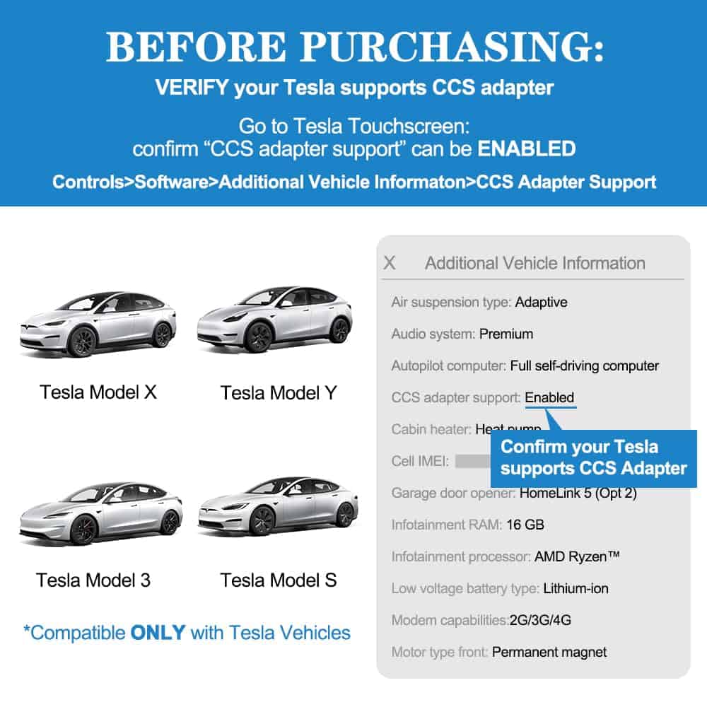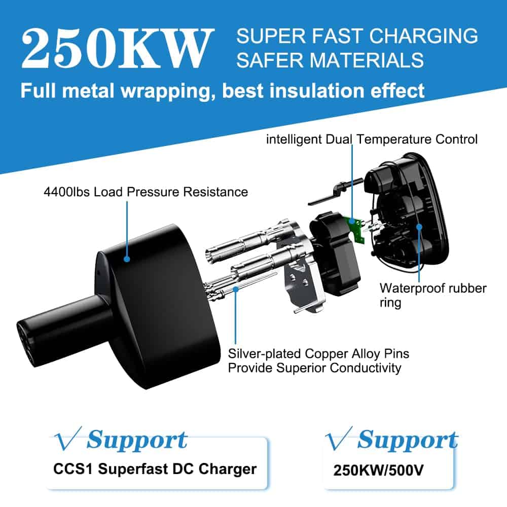 El Adaptador de Carga Rápida CCS1 a Tesla de Trisinger es perfecto para los propietarios de Tesla Model 3/Y/S/X que desean cargar sus vehículos de forma rápida y segura en estaciones de carga pública de nivel 3 con conector CCS. Este adaptador es compatible con los model S/X/Y/3 de Tesla, siempre y cuando admitan el CCS (Control > Software > Información Adicional del Vehículo > Soporte del Adaptador CCS: Habilitar). Con una velocidad de carga de hasta 250KW, su Tesla estará completamente cargado en pocas horas, aunque la velocidad de carga puede variar según las especificaciones de la estación de carga utilizada. Diseñado con materiales de alta calidad, el adaptador CCS a Tesla es resistente y eficiente, funcionando en un rango de temperaturas de -22°F a 122°F (-30°C a 85°C). Además, cuenta con monitoreo interno de temperatura en tiempo real, lo que garantiza la seguridad durante la carga al reducir o cortar la corriente en caso de temperaturas extremas. Con un diseño portátil y compacto, este adaptador es fácil de transportar y le proporcionará más opciones de carga para su Tesla. En caso de cualquier pregunta o preocupación, nuestro equipo de atención al cliente está disponible para ayudarlo.