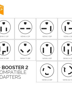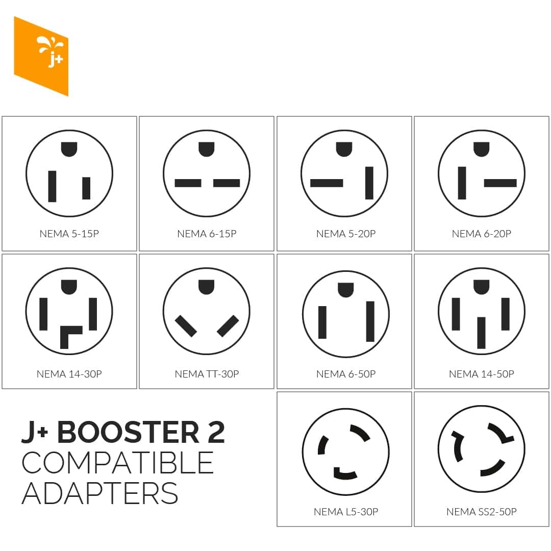 1. **ENCHUFAR Y LISTO!** Simplemente adjunta el adaptador al cargador de vehículo eléctrico J+ BOOSTER 2, conéctalo y carga inmediatamente con un rendimiento óptimo de hasta 16 amperios/120V/1.92KW.