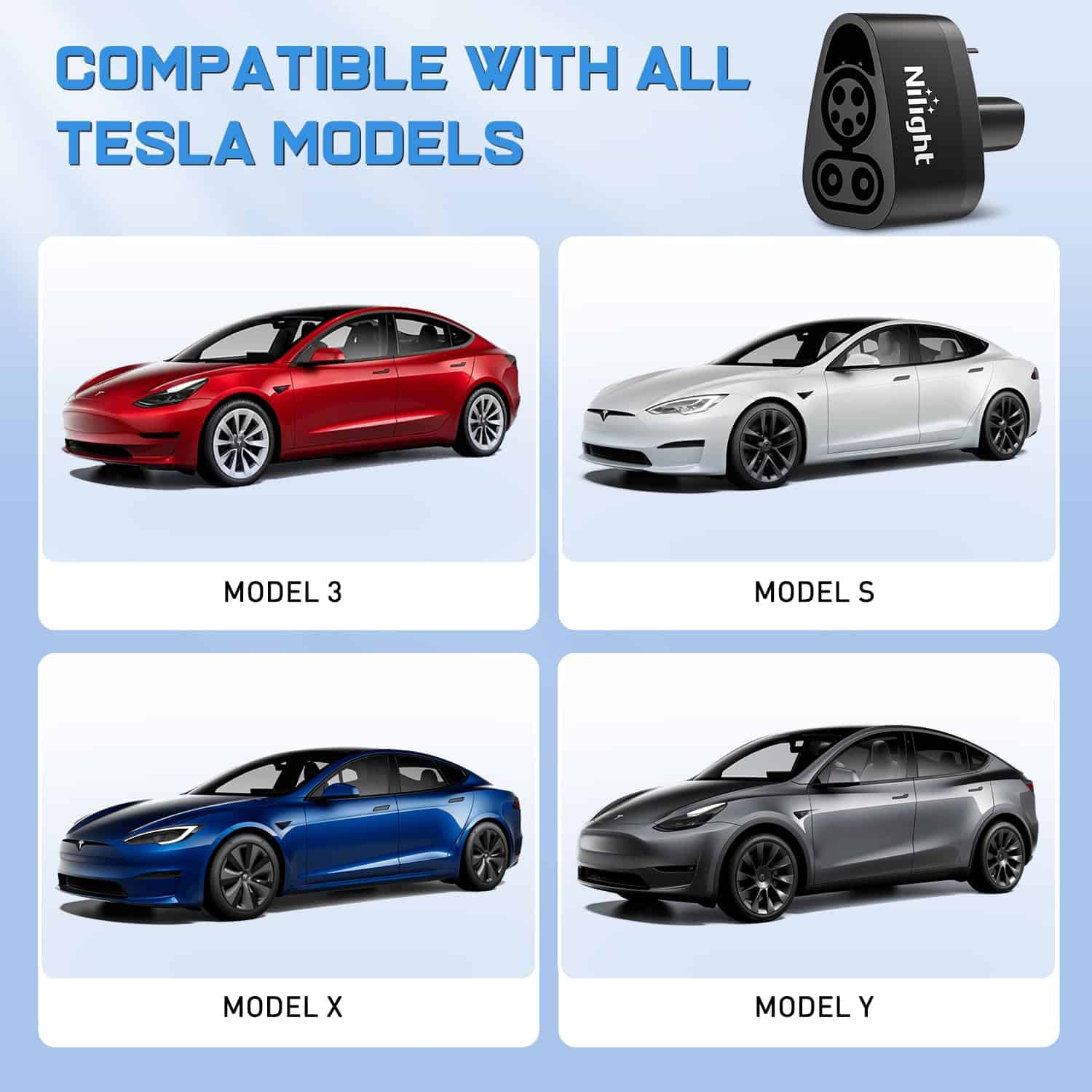 Nilight CCS1 to Tesla Adapter 80A 250AC, Compatible with Tesla Model 3, Y, S, X. Adaptador de Carga Rápida DC Compatible con Estación de Carga Rápida de Nivel 3 con Enchufe CCS
