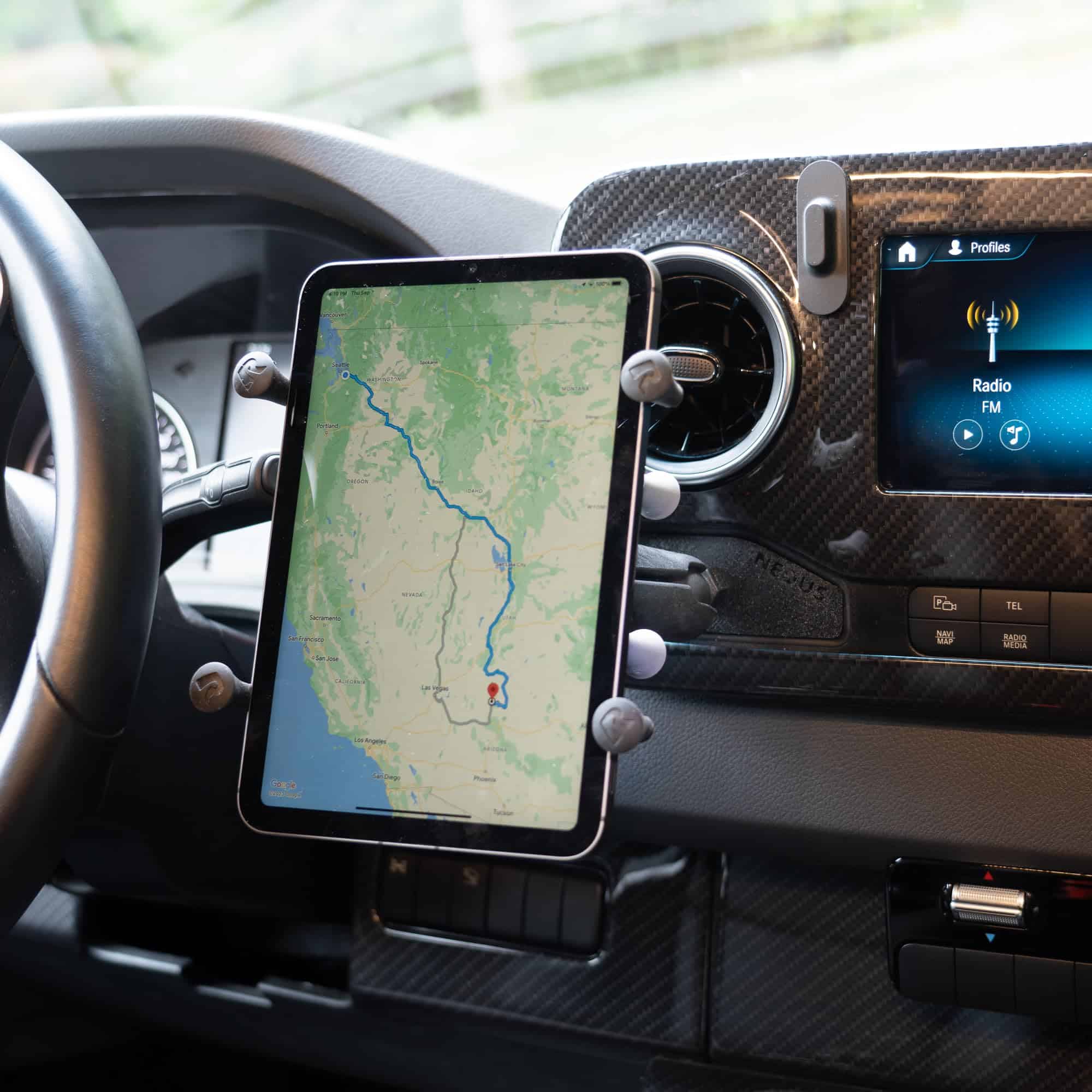 El Adaptador de Cubby NEXUS encaja perfectamente en el cubo del salpicadero del lado del conductor e incluye un montaje de bola de 1 pulgada (tamaño B) que permite la fijación de una variedad de dispositivos, incluyendo smartphones, tablets, cuencos, clips de bolsas, bandejas, dispositivos GPS, comunicadores satelitales y radios. Su dispositivo montado se puede colocar de manera ideal para su uso mientras conduce y lejos del parabrisas o las rejillas de ventilación para una mayor seguridad y comodidad. Fabricado con policarbonato, uno de los plásticos más fuertes y duraderos, y no se deforma en altas temperaturas. Se instala en segundos sin necesidad de realizar modificaciones en su furgoneta. Simplemente coloque el adaptador en el cubby y apriete el tornillo de bloqueo con la llave proporcionada. Una tuerca de bloqueo incrustada asegura el montaje de bola al adaptador evitando que se afloje incluso en los caminos más accidentados. Compatible con el NEXUS Dash Track, NEXUS Dash Bowl y NEXUS Dash Clip, que se venden por separado. El adaptador se ajusta a las últimas furgonetas Sprinter VS30 (2019 o posterior) o conversiones de Sprinter como Winnebago Revel, Storyteller Overland o Jayco Terrain con una abertura de cubby que mide 9.5 x 2.7 cm. (Tenga en cuenta que algunas versiones de Sprinter sin una pantalla táctil del salpicadero MBUX tienen una abertura de cubby más grande y requieren un retrofit. Simplemente contacte a Nexus Prints para obtener su kit de retrofit gratuito si el artículo no encaja de manera ajustada).