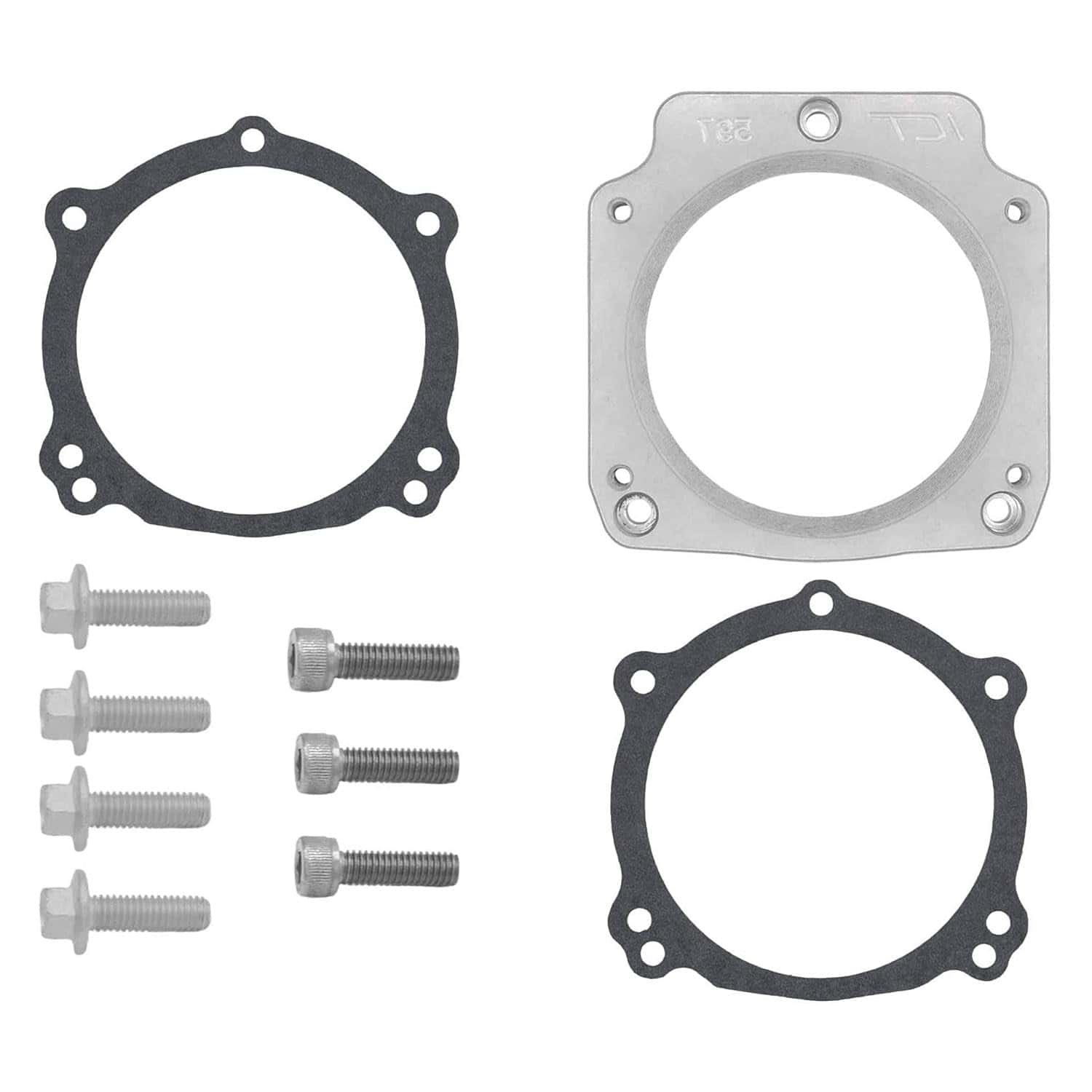 LS 3 Pernos 92mm de Admisión a 4 Pernos 102mm de Cuerpo del Acelerador. Agregue fácilmente un cuerpo del acelerador de 102 mm y 4 pernos a su colector de admisión de 3 pernos con este adaptador de flujo alto. Tiene un agujero pasante de 92 mm, cono de 102 mm para el cuerpo del acelerador. Cuenta con un centro mecanizado en 3D para un flujo de aire máximo. Funciona con cuerpos de mariposa DBW y DBC. Hecho en Wichita, Kansas, de aluminio billet producido en EE. UU. de calidad aeroespacial. Incluye: placa adaptadora, pernos y juntas. No compatible con el colector de admisión Edelbrock Pro-Flo.