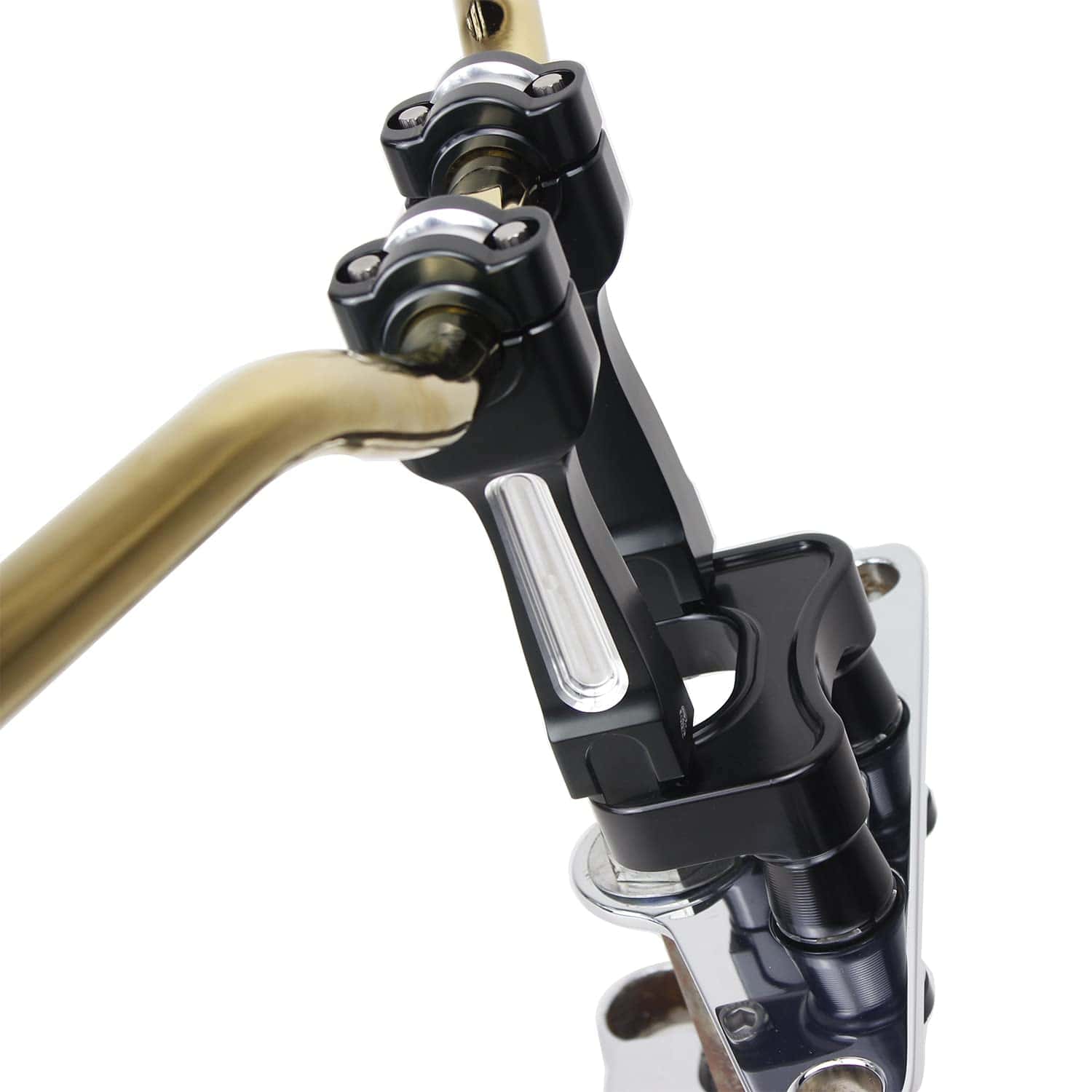 Hecho de aluminio 6061 T6, el Adaptador de Elevadores de Manillar POWERJAMES está acabado con anodizado negro y grabado con el logo de la marca. Este adaptador mueve la ubicación de montaje 1 5 / 8″ hacia los pilotos, con una longitud de 3.5″ de centro a centro. Compatible con la mayoría de los elevadores cuyo centro moleteado mide 3.5″, se vende por unidad (solo el adaptador, no incluye los elevadores). Diseñado para adaptarse a los modelos Harley Davidson 15-later Road Glide (FLTR/ FLTRU/ FLTRK/ FLTRX) con grandes carenados exteriores y a los modelos Softail y Dyna, especialmente para Street Bob, Fat Bob, Low Rider, Fat Boy, Super Glide, entre otros.