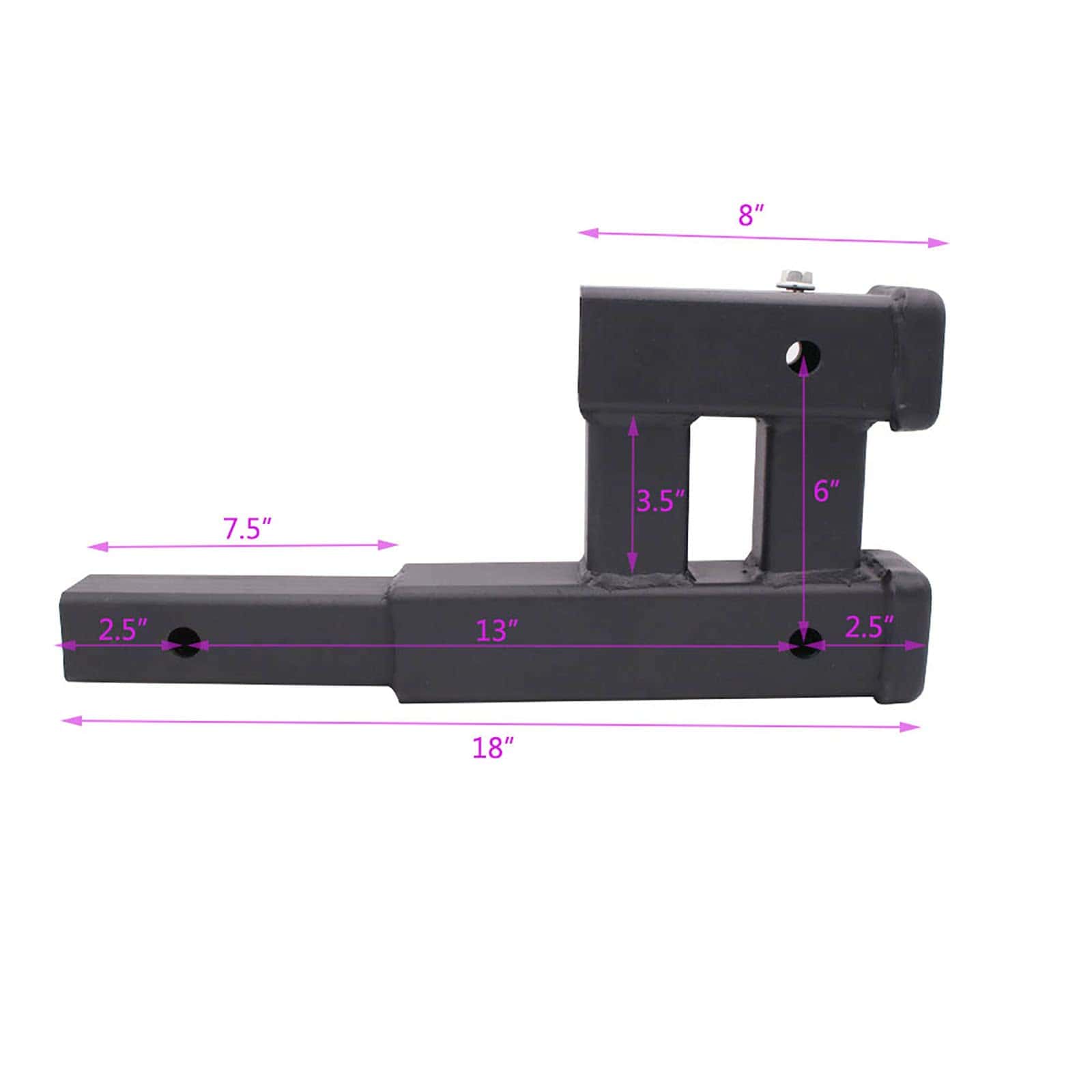 Adaptadores dobles de enganche de 2 pulgadas, adaptadores de doble propósito. Material de acero, recubierto en polvo en la superficie. Alta calidad de capacidad tensil. El extensor de receptor se puede utilizar para elevar y bajar portabicicletas, bandeja de carga, portaequipajes, portamotos, etc.