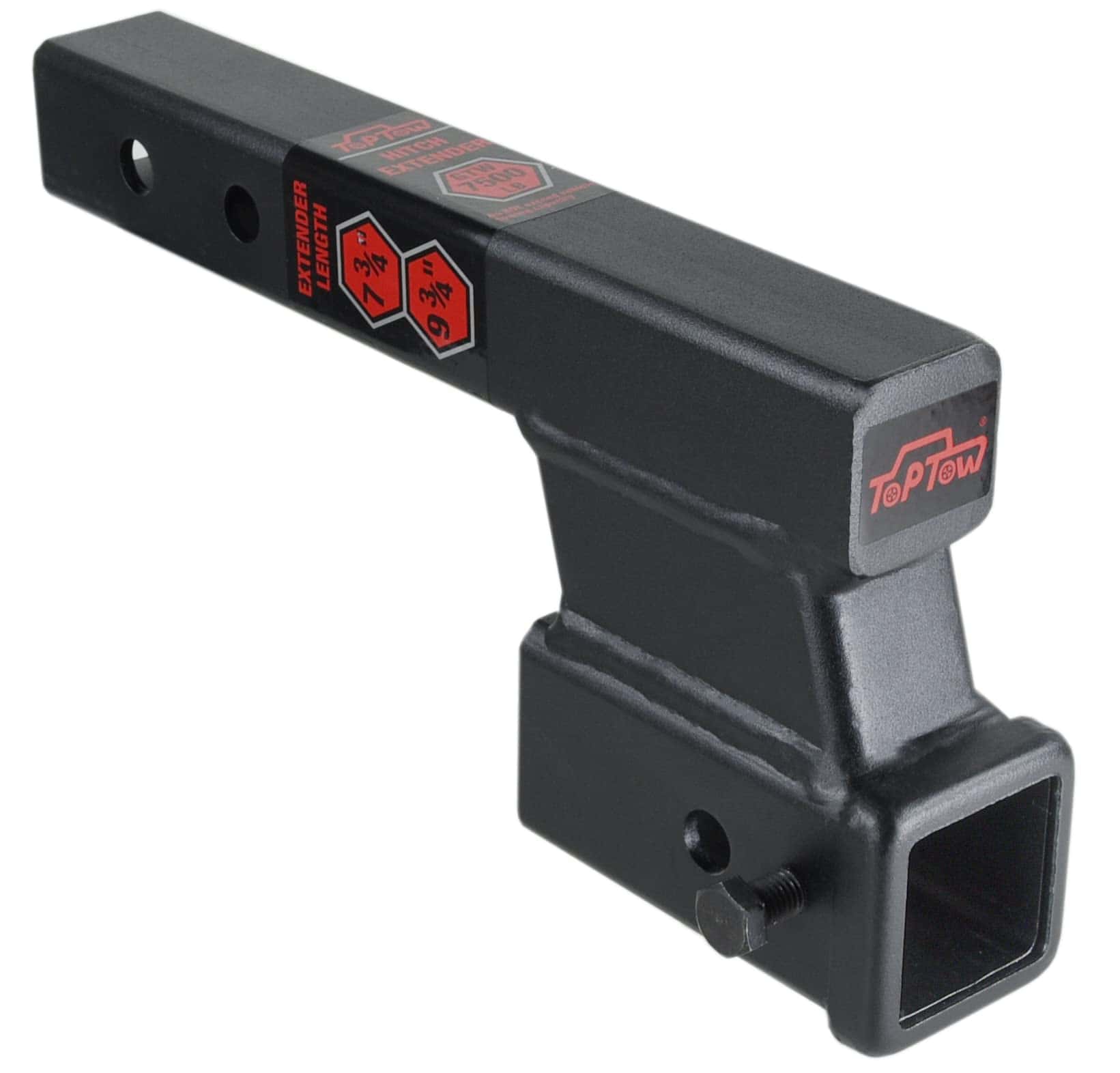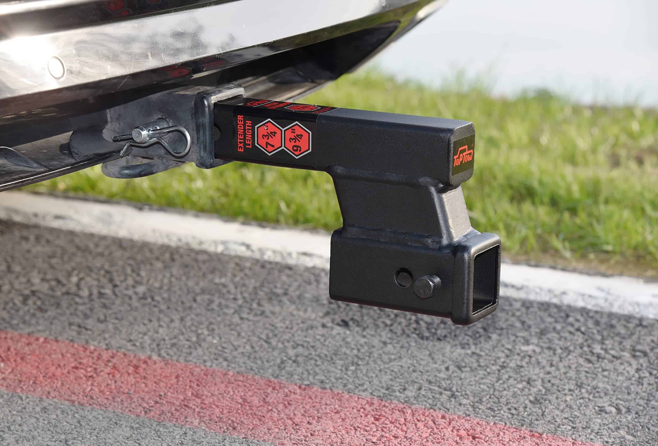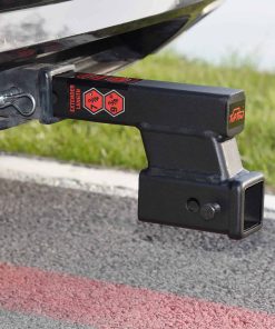 Por favor, revise con cuidado las dimensiones y características de este adaptador de extensión de enganche de remolque TOPTOW antes de realizar la compra. Este adaptador de enganche de remolque está diseñado para adaptarse a la mayoría de los vástagos de 2 pulgadas de montajes de bola, porta bicicletas, portaequipajes y otros accesorios de enganche. La caída o aumento de 4 pulgadas del enganche se puede ajustar para nivelar el sistema de remolque según sea necesario. Con 2 agujeros de pasador, este adaptador de enganche ofrece dos longitudes activas de extensión, de 8″ y 10″, para evitar interferencias con el parachoques del vehículo. Con una capacidad de remolque de hasta 7500 libras de peso bruto de remolque y 350 libras de peso de la lengua, este adaptador de extensión de enganche es resistente y confiable para remolcar remolques, botes, campers, porta bicicletas, portaequipajes y más. El tamaño del receptor es de 2 pulgadas por 2 pulgadas, y cuenta con un dispositivo de perno antirroce para mayor seguridad durante el transporte.