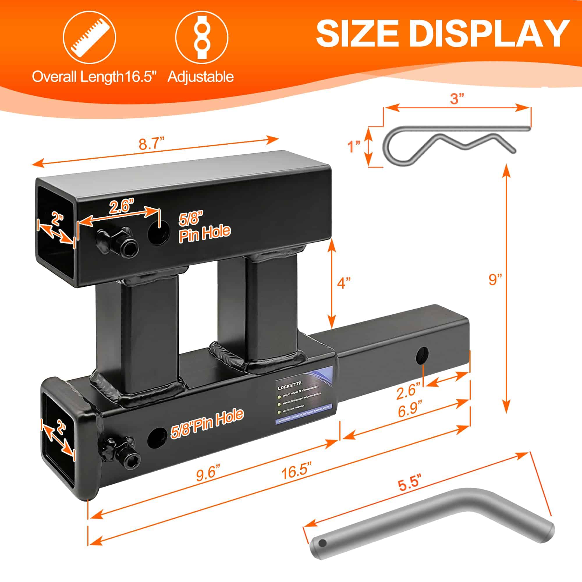 5. PAQUETE INCLUIDO: 1 x Extensión de receptor doble, 1 x Pasador de 5/8″, 1 x Clip