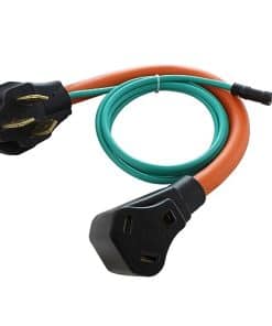 Este adaptador de RV de la marca AC WORKS, modelo RV1050TT-018, tiene una longitud de 1.5 pies y es de NEMA 10-50P a NEMA TT-30R. El NEMA 10-50P es un enchufe macho antiguo de $P, 50 amperios, 125/250 voltios de 3 clavijas para soldadoras/ranuras antiguas. El NEMA TT-30R es un conector hembra de RV de 30 amperios, 125 voltios. Este adaptador tiene una potencia máxima de operación de 3750 vatios y está respaldado por una garantía limitada de 5 años. Adaptador de RV de 30 Amperios Conecta un cable estándar de RV de 30 amperios a un antiguo tomacorriente de soldadora/rango NEMA 10-50P, 50 amperios, 125/250 voltios enchufe macho de 3 clavijas NEMA TT-30R, 30 amperios, 125 voltios conector hembra de RV de 30 amperios Garantía limitada de 5 años
