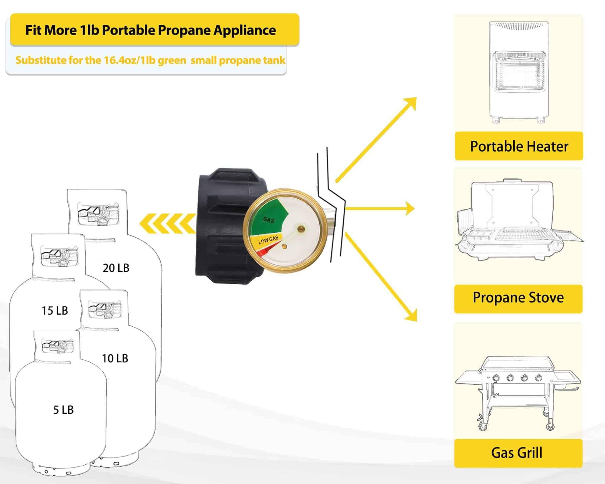Adaptador de Manguera de Propano de 12 pies 1 lb a 20 lb