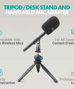 This handheld adapter/mic stand bundle for compact wireless mic/transmitters transforms your wireless mic into a desktop mic perfect for podcasting, interviews, and other kinds of content creation. With this perfectly weighted microphone mount and mic stand, you can instantly transform you compact wireless lavalier mic into a wireless podcast setup. The mount of the handle features multiple grooves to lock in the clip of the the DJI Mic, DJI Mic 2, Rode Wireless GO Series, Hollyland Lark Series, Movo WMX-2, Movo Wireless-MINI, and other wireless microphones. The handle and mic stand are made of lightweight ABS, this microphone handle stands up to long shoots in any conditions. We�ve got your back! Our products are designed to ease your technical woes, not add to them. Our friendly US-based support is here to help.