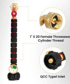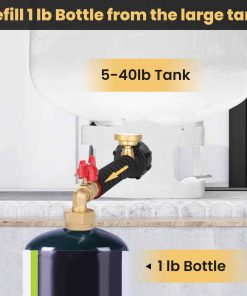 El adaptador de recarga de propano Aekops es perfecto para aquellos que desean ahorrar dinero rellenando sus propias botellas de propano de 1 lb. Es ideal para actividades al aire libre como campamentos, barbacoas, picnics y más. Este adaptador está diseñado con un nuevo y mejorado diseño que incluye una longitud de 9 pulgadas para proporcionar más espacio de llenado que otros adaptadores similares. Además, cuenta con un medidor fluorescente que lee la presión de los tanques grandes, facilitando el seguimiento de la capacidad restante. Fabricado con 100% latón sólido de alta calidad, este adaptador es duradero y resistente a la corrosión, lo que garantiza un sellado seguro y una larga vida útil. Su construcción en codo de 90 grados asegura que el tanque de propano se mantenga en posición vertical durante el rellenado, previniendo así posibles fugas de gas. Este adaptador es fácil de usar, simplemente conecte el accesorio QCC1 al tanque grande, abra la válvula de gas y conecte el adaptador a la botella de 16 oz. Monitoree el llenado por sonido y peso, y para una experiencia óptima, precongele las latas de gas antes de llenarlas. Con el adaptador de recarga de propano Aekops, llenar tus botellas de propano de 1 lb nunca ha sido tan fácil y conveniente.