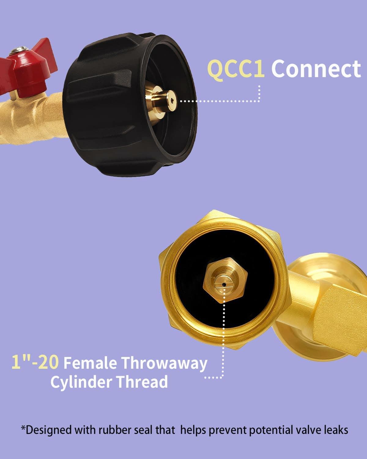 4. Compatibilidad Versátil — Este adaptador de recarga de propano es compatible con tanques de propano QCC1/Type1 que van desde 5 hasta 40 libras. Es perfecto para una amplia gama de usos que incluyen estufas de camping, parrillas portátiles, parrillas de mesa, calentadores y más.