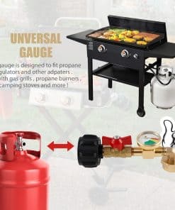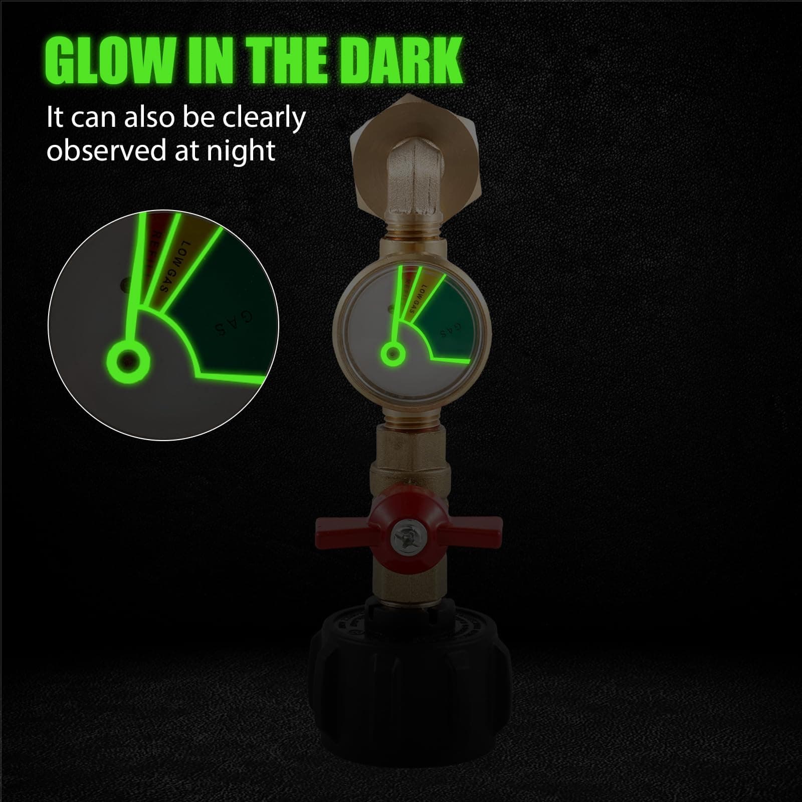 3. Dial codificado por colores: ¡Mantenga un control fácil de sus niveles de propano! El dial codificado por colores le permite evaluar rápidamente si se encuentra en rojo (vacío), amarillo (bajo) o verde (suficiente) incluso en la oscuridad. Detecte fugas peligrosas y verifique los niveles de combustible de un vistazo.
