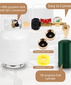 5. El paquete incluye: El paquete incluye 1 adaptador de recarga de propano, 2 tapones para tanques de propano y 1 rollo de cinta de sellado, fácil de usar, abrir y controlar el proceso de llenado. Adecuado para calentadores, estufas de campamento, parrillas portátiles y de mesa y más. Para sus necesidades de acampada, barbacoa, tailgating, calefacción y picnic al aire libre.