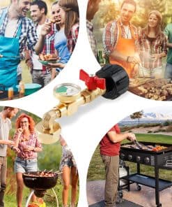 4. Calidad y resistencia: Este adaptador de codo de recarga de propano está construido de latón sólido para garantizar un sello de calidad, con un protector de desbordamiento incorporado, proporciona una buena resistencia a la intemperie, seguro. Recarga de propano hecha fácil.