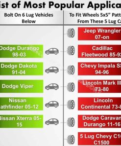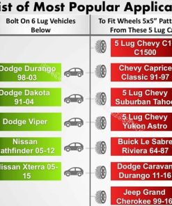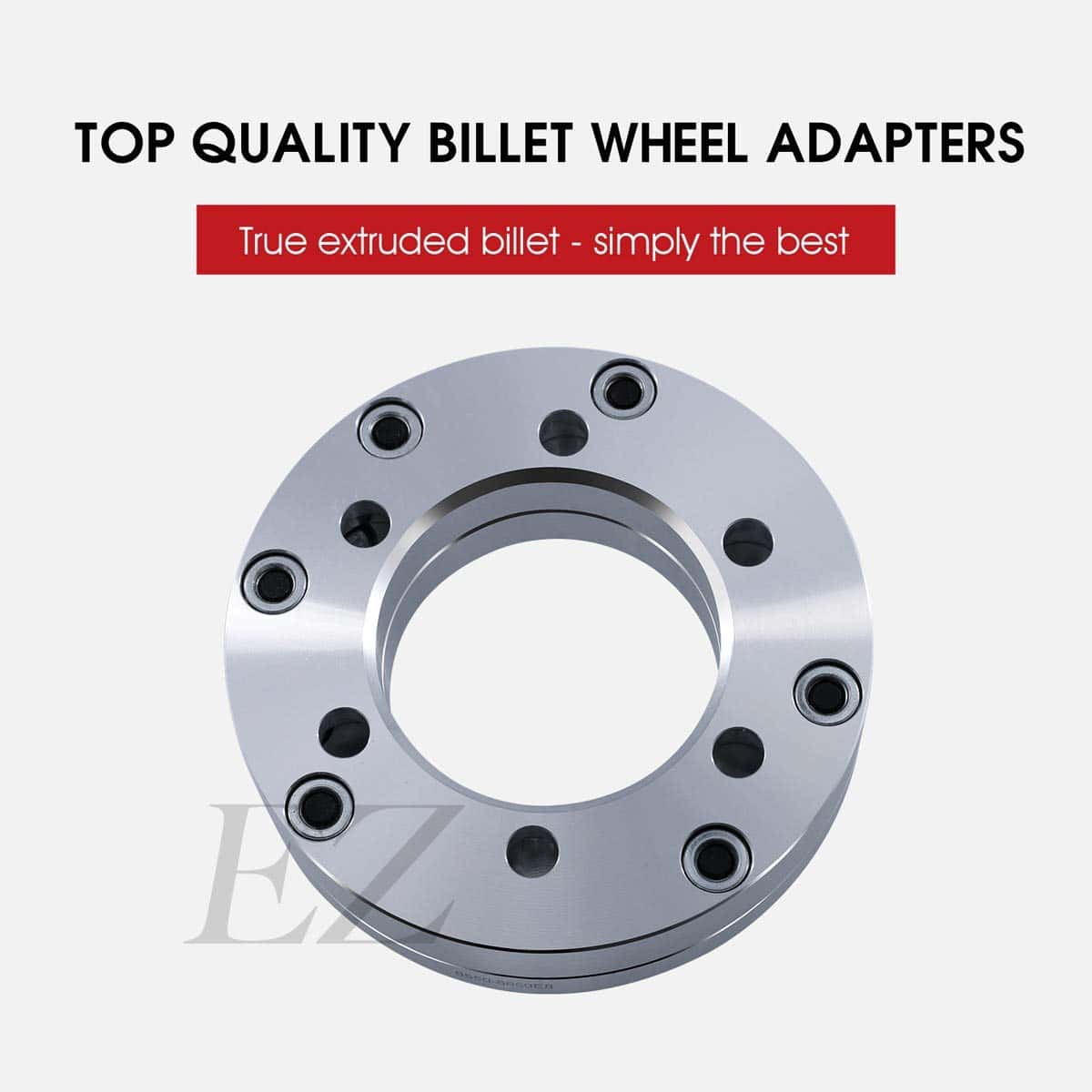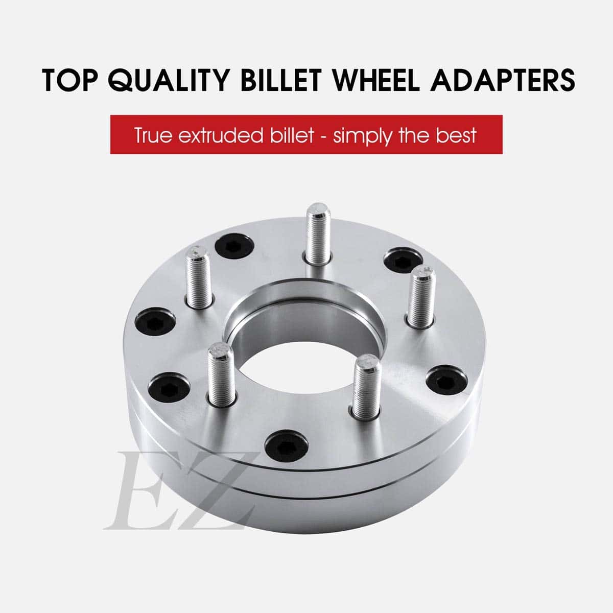 Estos adaptadores de rueda de tipo de conversión de dos piezas se utilizan para convertir un vehículo de 6 birlos con un patrón de perno de 4.5″ (114.3mm) para que encaje con ruedas con un patrón de perno de 5 birlos de 5″ (127mm). Mayormente se utilizan en Dodge Dakota de 6 birlos, etc. para instalar ruedas Silverado de 5 birlos. También harán que tus ruedas se separen 2 pulgadas para ayudarte a obtener suficiente espacio para neumáticos y llantas más anchos. Mecanizado CNC con artesanía de precisión utilizando aluminio de calidad aeroespacial 6061 T6, con una alta capacidad de carga y resistencia a la corrosión. Los pernos de alta calidad vienen preinstalados. Se venden como un par para 2 ruedas. Pedido de 2 pares para las 4 ruedas.