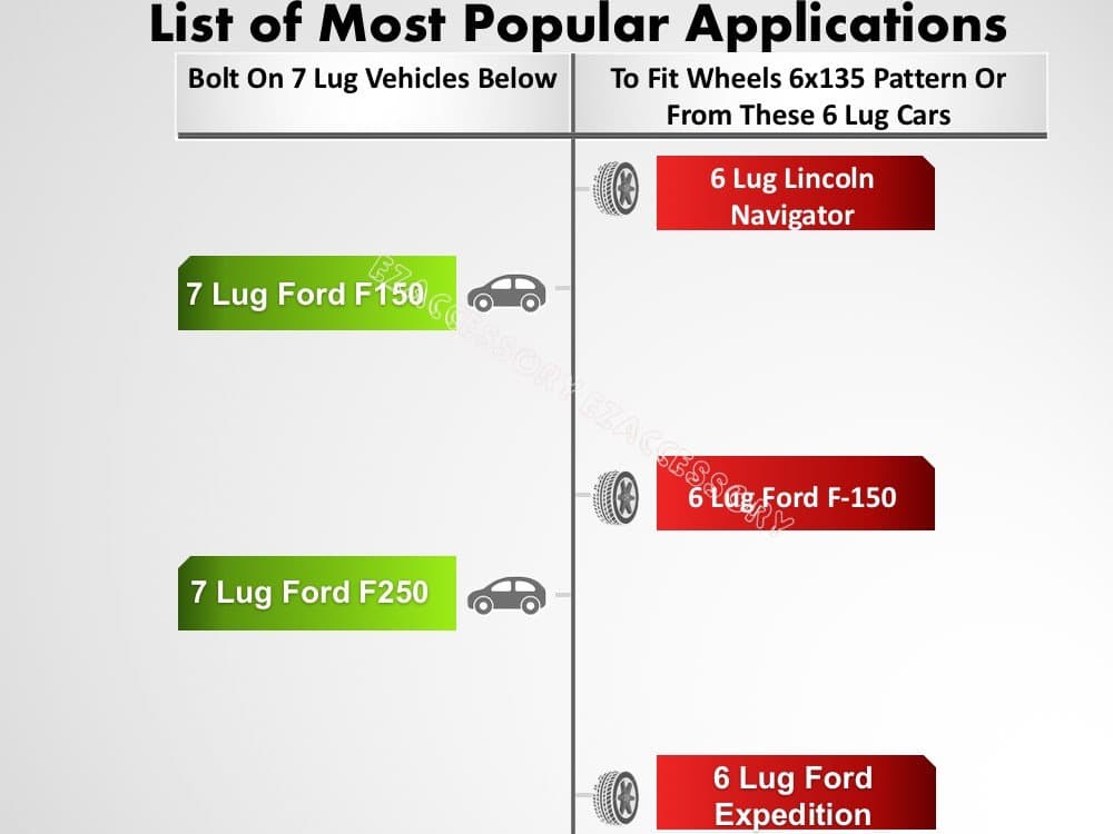 Estos adaptadores de rueda tipo conversión de dos piezas se utilizan para convertir un vehículo de 7 birlos con patrón de pernos de 150mm para adaptar ruedas con patrón de pernos de 6×135. Mayormente utilizados para Ford Super Duty de 7 birlos para instalar ruedas F150 de 6 birlos. También espaciarán tus ruedas por 2 pulgadas para ayudarte a obtener suficiente espacio para neumáticos y aros más anchos. Mecanizado CNC con artesanía de precisión utilizando billet de calidad aeroespacial 6061 T6, destacados por alta capacidad de carga y resistencia a la corrosión. Los pernos de alta calidad están preinstalados. Se venden en pares para 2 ruedas. Ordena 2 pares para las 4 ruedas.