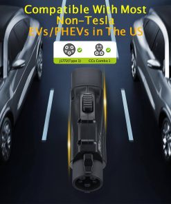 Adaptador de Carga de Tesla a J1772 Kipalm con Bloqueo Anticaída, Máx 60 Amp y 250V, Impermeable, Para Conectores de Pared de Alta Potencia Tesla, Cargadores de Destino y Conectores Móviles. El Adaptador de Tesla a J1772 de Kipalm, Máx 60 Amp y 250V, es compatible con todos los con conectores de carga J1772 EVs y PHEVs y se puede utilizar con conectores de pared de alta potencia de Tesla, cargadores de destino y conectores móviles. (NO apto para Superchargers de Tesla). Con este adaptador, puede acceder a más de 40000 cargadores de Tesla adicionales para su vehículo J1772. Este adaptador de carga para vehículos eléctricos ha pasado la certificación FCC y CE y cumple con las pautas de seguridad más estrictas. El adaptador cuenta con dos bloqueos de seguridad anticaída para un uso sin problemas. Puede ser utilizado en entornos extremos que van desde -22 F a 122 F. Con una corriente máxima y voltaje de 60A y 250VAC. Más de 10 mil veces de experimentos de enchufe/desenchufe, seguro y confiable. Grado de impermeabilidad: IP65, con impermeabilidad diaria y a prueba de polvo, y el adaptador es resistente a la presión y retardante de llama. Grado de retardante de llama: UL 94v-0. Este adaptador J1772 cuenta con un diseño ligero. Tamaño: 7.8 pulgadas 4 pulgadas 2.75 pulgadas. Peso: solo 1.06 libras. Es pequeño, portátil y plug-n-play. Este adaptador es un accesorio necesario cuando conduce el coche eléctrico J1772 a la oficina, hotel, aeropuerto, camping, exteriores, vacaciones y viajes por carretera. Ofrecemos una garantía de 18 meses. Si tiene algún problema con su cargador, nuestro equipo de soporte al cliente siempre está disponible para ayudarle.