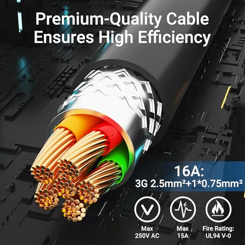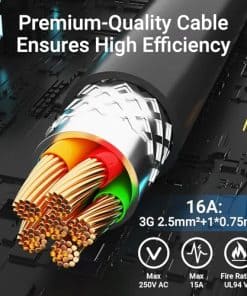2. Cable Ultra Largo de 16.5 Pies Libera una comodidad y versatilidad sin precedentes con nuestro cable ultra largo de 16.5 pies, que te permite alcanzar y utilizar fuentes de energía en lugares antes inaccesibles, elevando tu experiencia de aventura a nuevas alturas. Especificación de 3G 2.5 mm + 1 0.75 mm para una utilidad y eficiencia mejoradas.