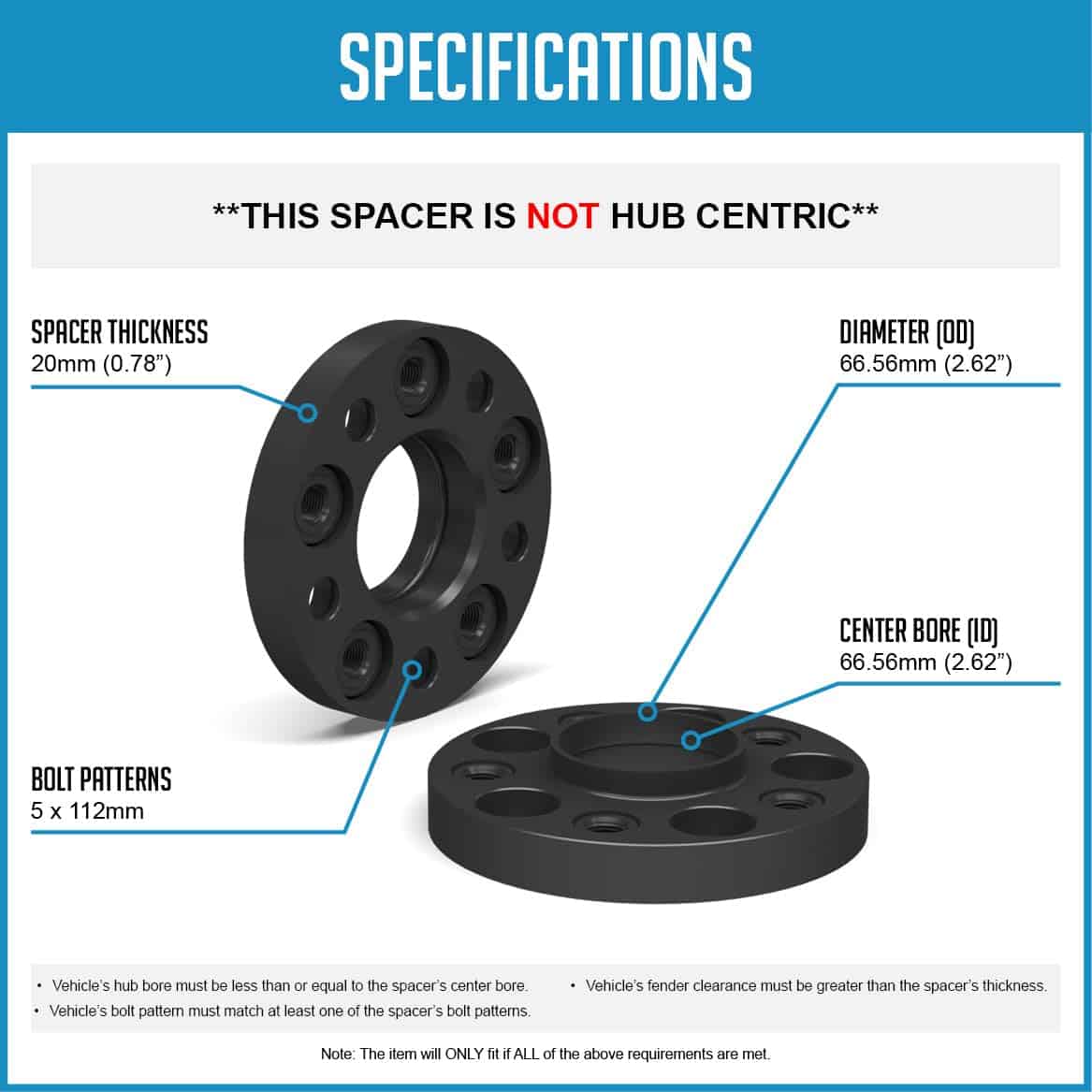 Adaptador Espaciador de Rueda Euro Hub Centric de 20mm de
