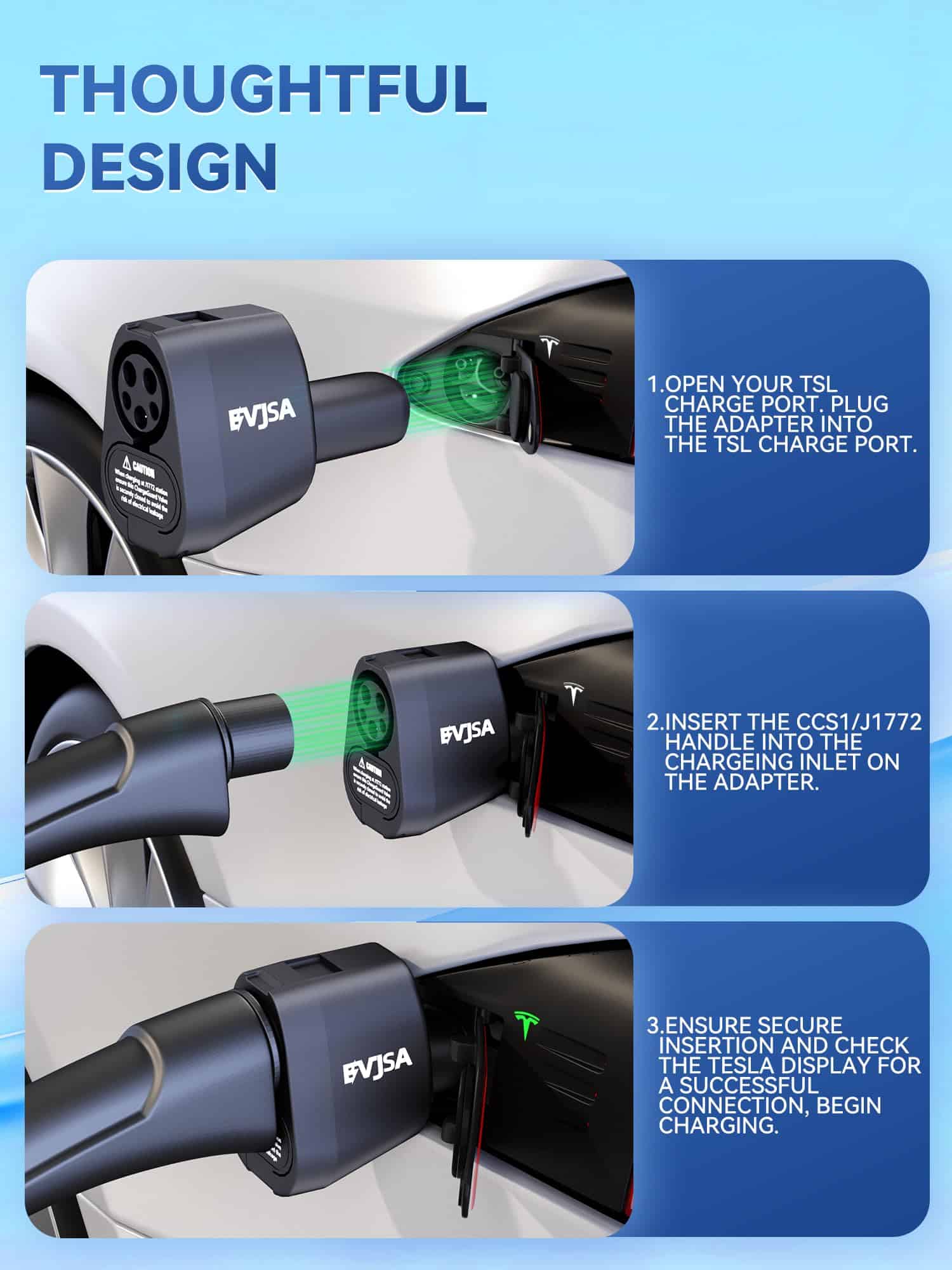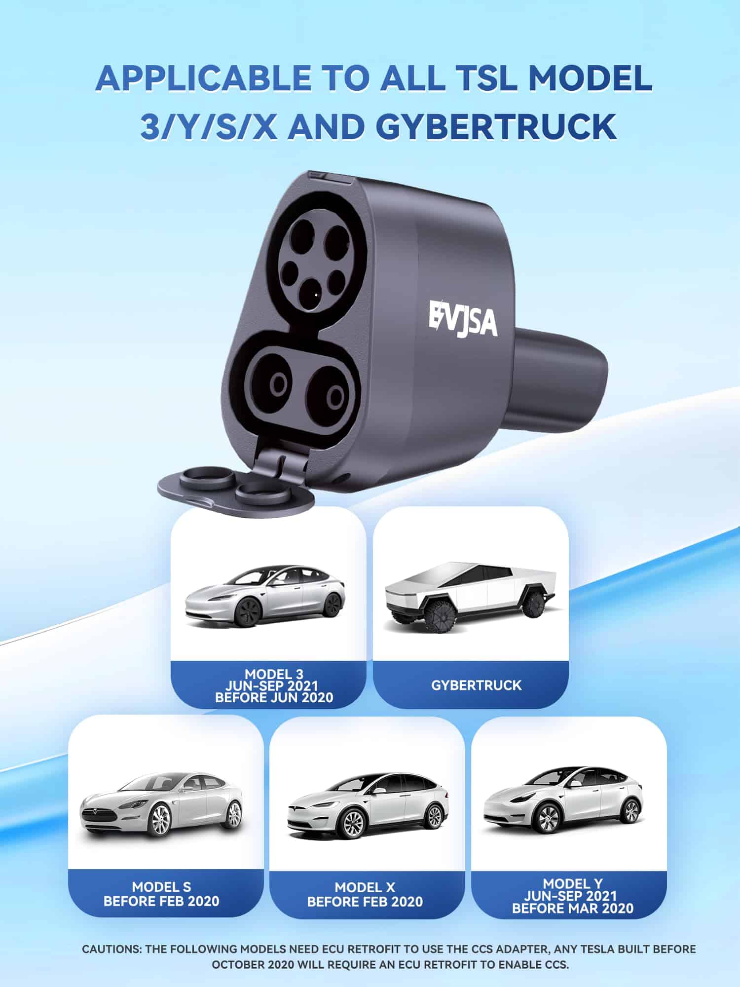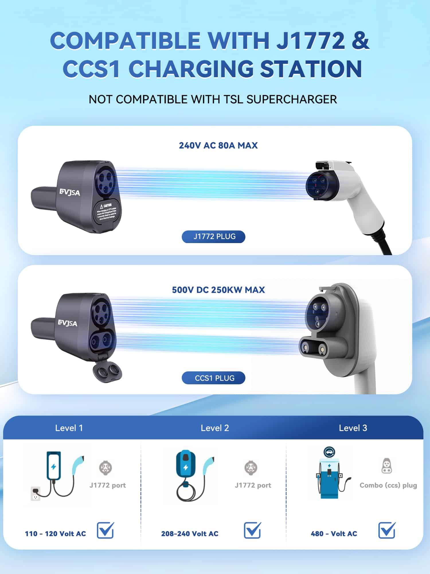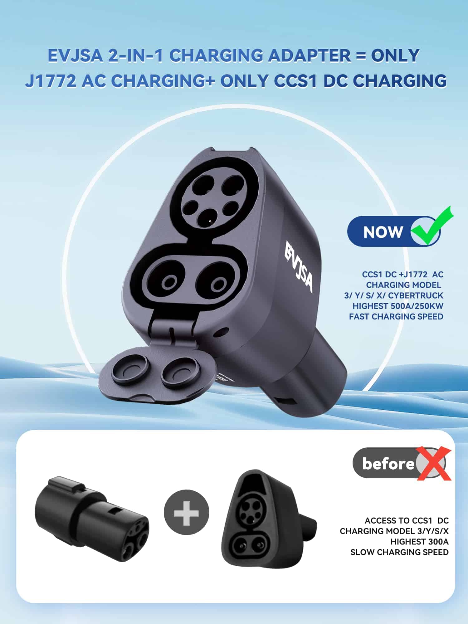 Adaptador EVJSA 2 en 1 CCS & J1772 a Tesla, Cargador Tesla