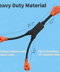 Adaptador RV Y de Ficstar que te permite conectar un enchufe macho de 50 amperios a dos enchufes hembra de 30 amperios, facilitando la obtención de energía para tu RV. Con una construcción resistente que incluye revestimiento STW y cables de cobre puro de calibre 10 AWG x 3C, este cable adaptador está diseñado para un rendimiento resistente y duradero. El mango de desconexión facilita la conexión y desconexión sin dañar el cable, lo que lo hace conveniente de usar. Además, este adaptador es adecuado para uso en exteriores gracias a su durabilidad adicional y capacidad para mantenerse flexible en climas cálidos y fríos. Ideal para su uso en furgonetas camperas, remolques, autocaravanas y caravanas, este adaptador RV Y de Ficstar es la solución perfecta para suministrar energía rápida y confiable a tus electrodomésticos domésticos.