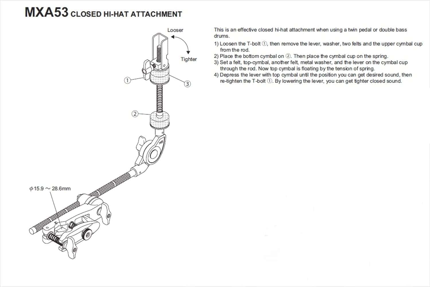 Adaptador Tama para HiHat cerrado con inclinación de ajuste rápido. Color: Cromo.