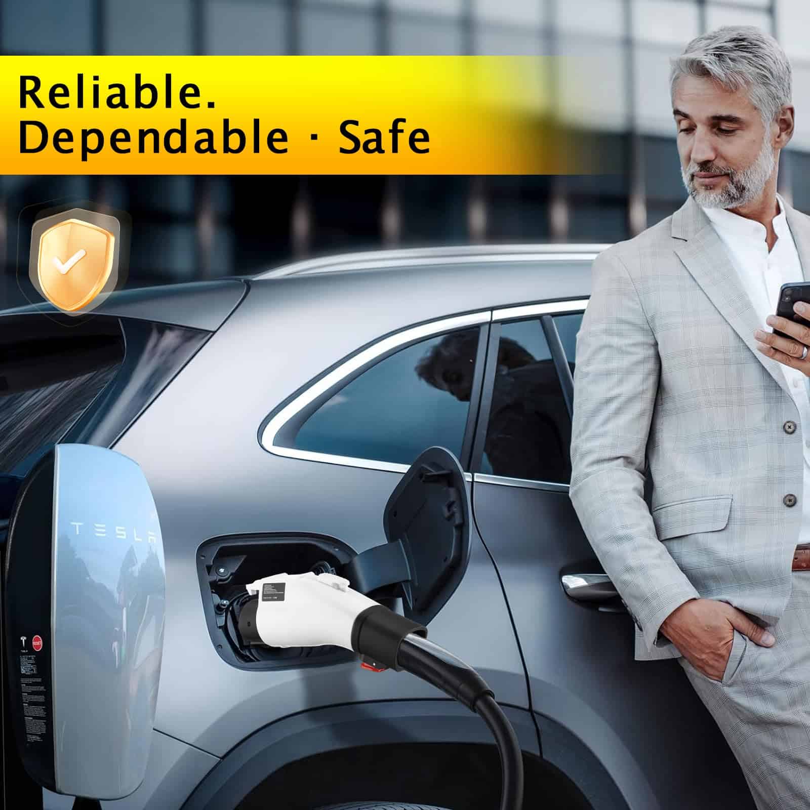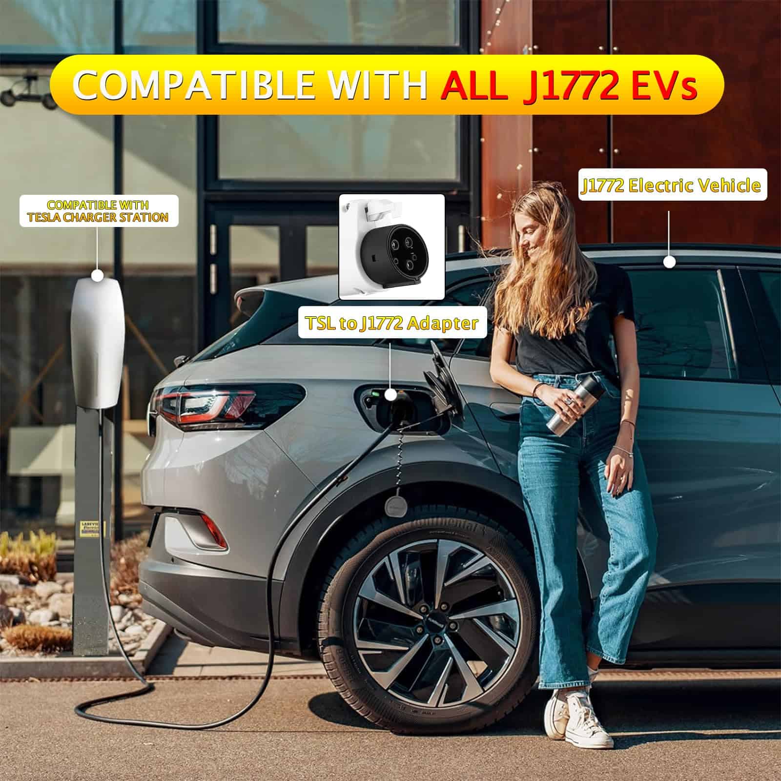Accede a cargadores Tesla o al estándar de carga norteamericano (NACS) para cargar tu vehículo eléctrico, el Adaptador Tesla a J1772 soporta una carga de hasta 60A y está diseñado para conectar vehículos J1772 a los cargadores de Tesla. Certificación FCC, CE, este adaptador de carga para vehículos eléctricos ha pasado la certificación FCC y CE y cumple con las pautas de seguridad más estrictas. El adaptador tiene dos bloqueos de seguridad anticaída para un uso sin problemas. Se puede utilizar en entornos extremos que van desde -22 F hasta 122 F.