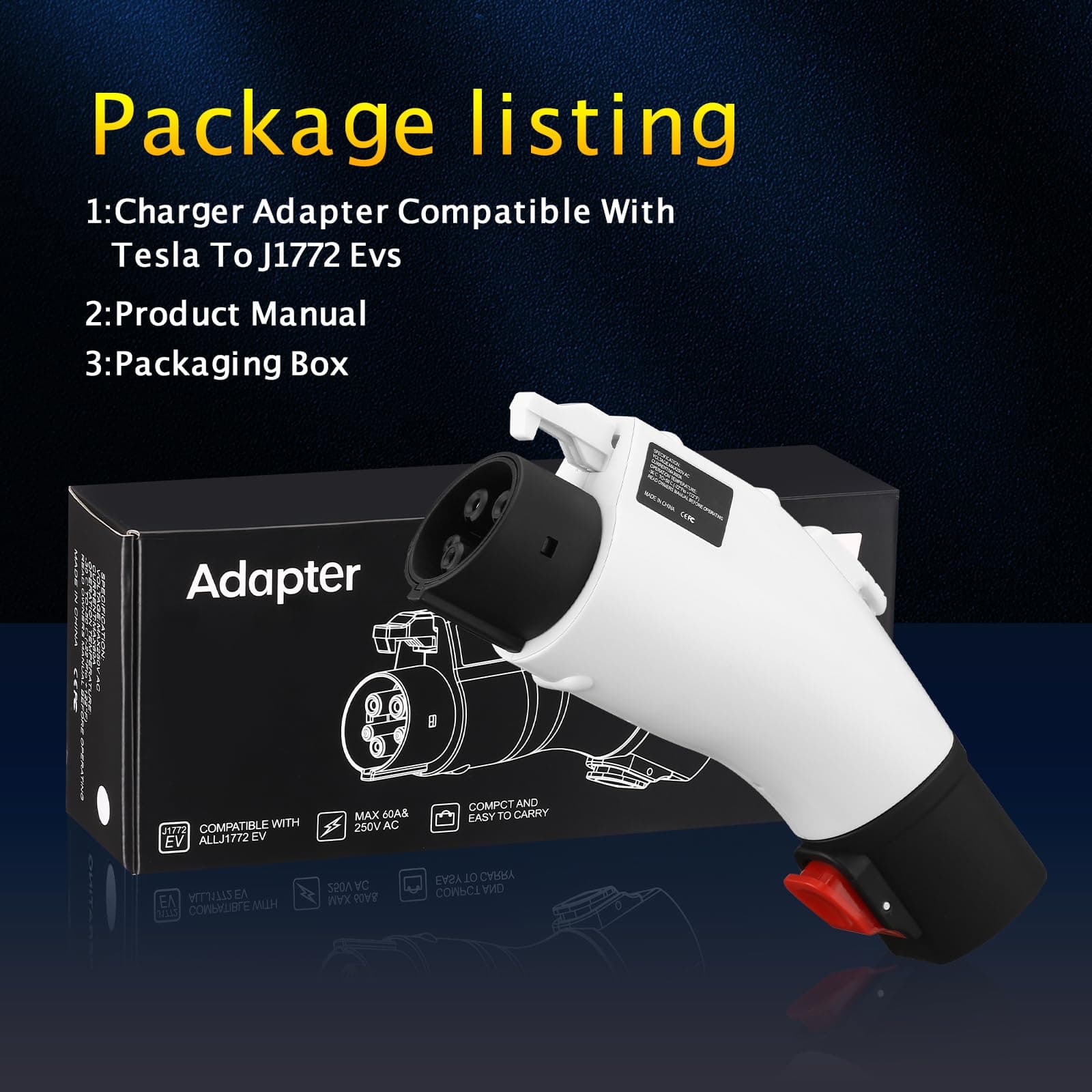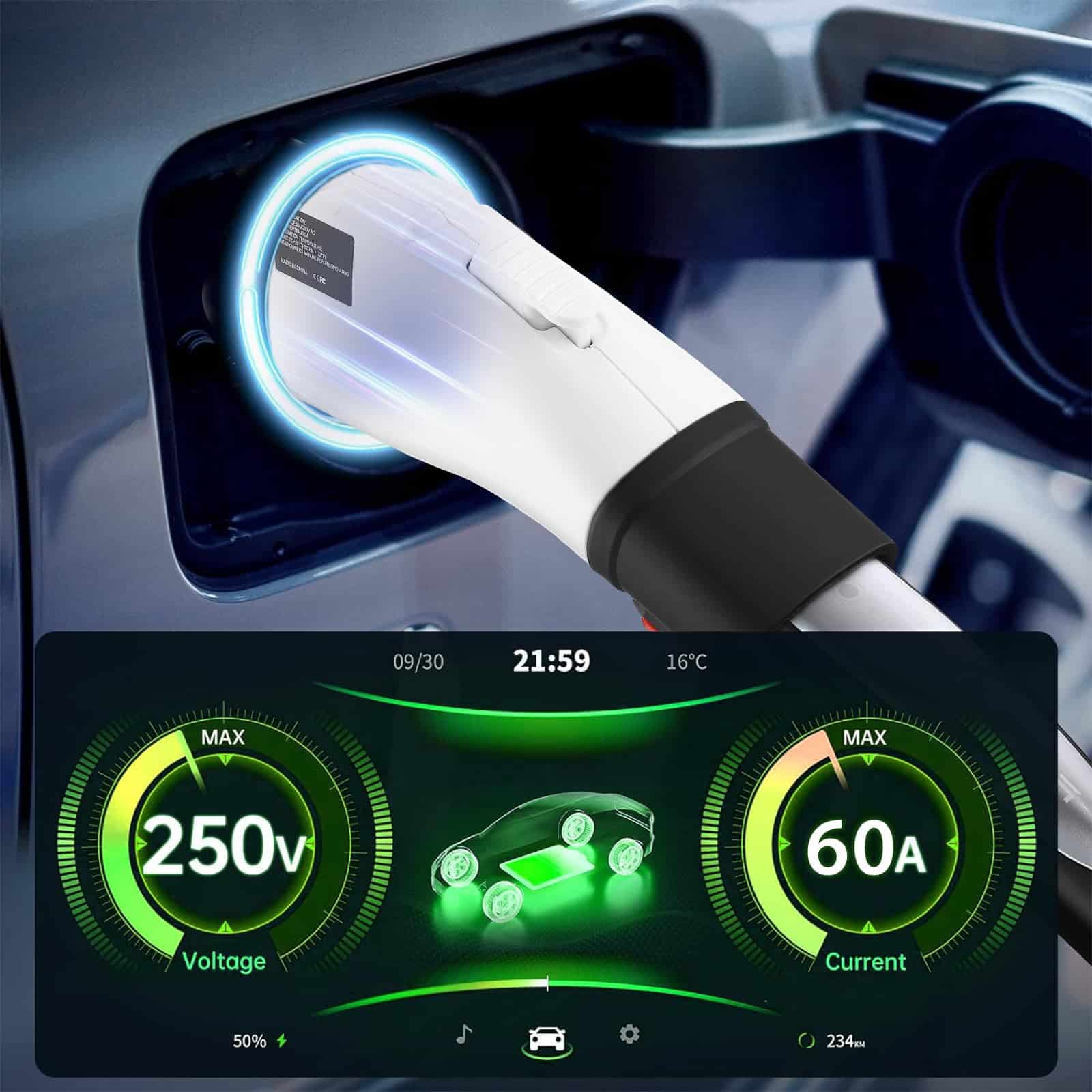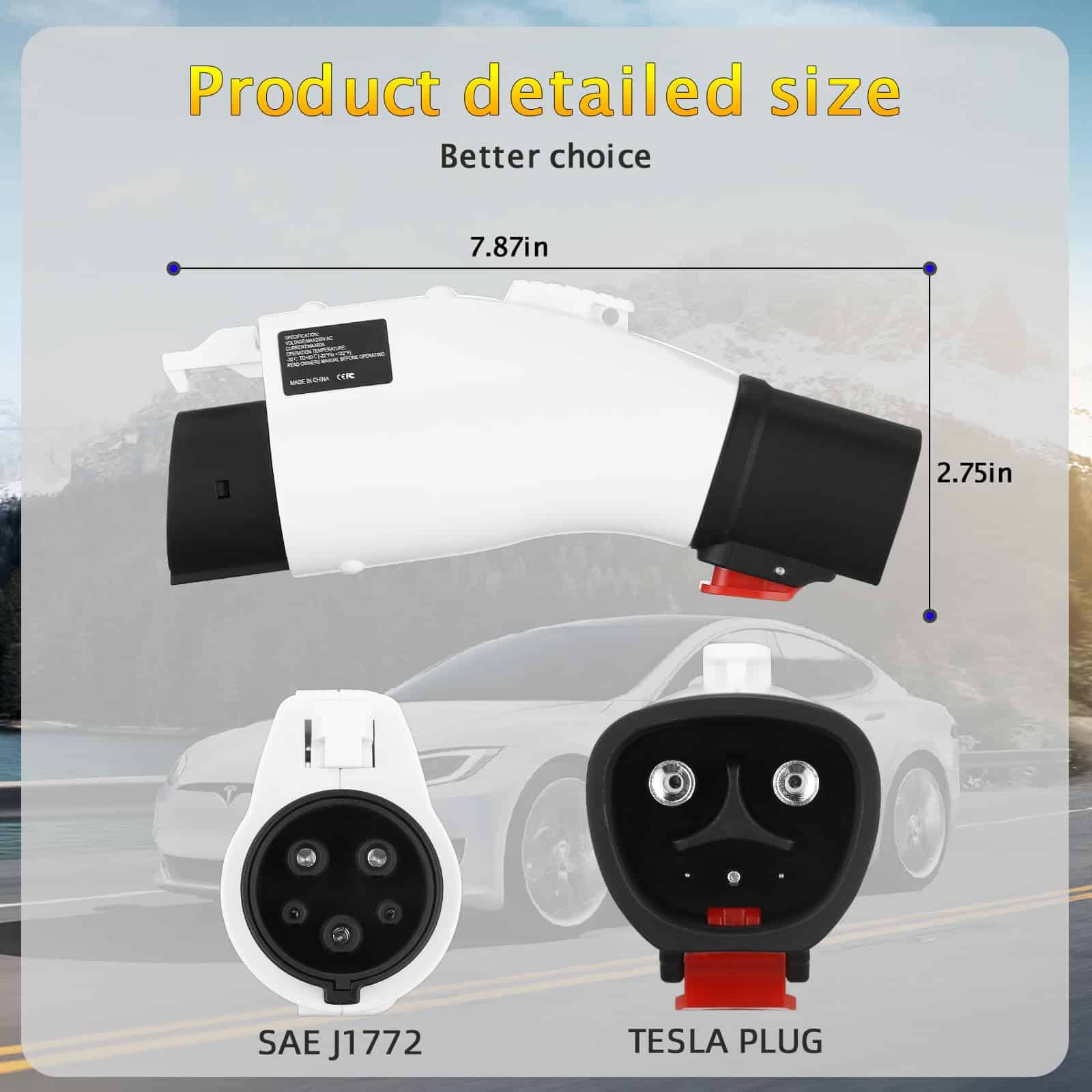 Adaptador Tesla a J1772, Máx. 60 Amp & 250V, Compatible con
