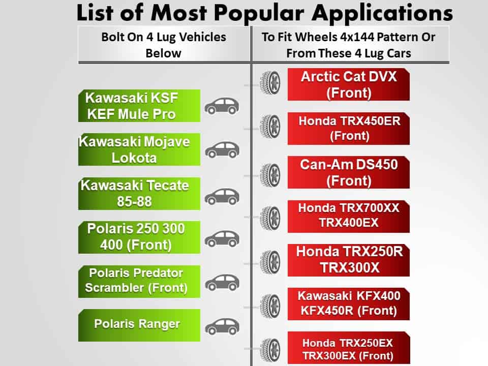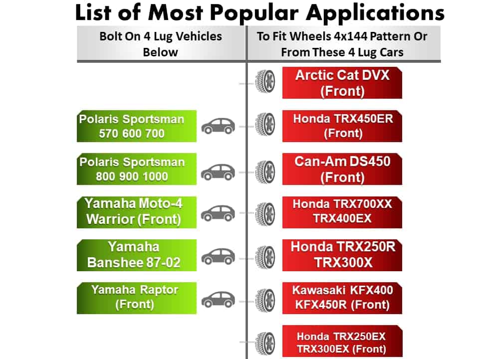 No asuma que los patrones de pernos de ATV anteriores funcionan tanto para la parte delantera como para la trasera, ya que a menudo son diferentes. Debe medir antes de comprar los adaptadores.