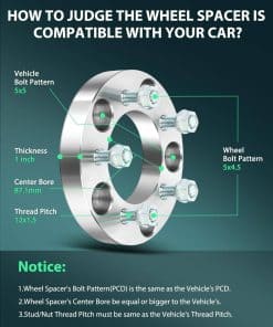 Los Adaptadores de Espaciador de Rueda SCITOO de 1 pulgada son la solución perfecta para ensanchar la base de las ruedas de su vehículo y mejorar su apariencia y estabilidad. Hechos con aluminio billet T-6 verdadero de alta calidad, estos espaciadores de rueda garantizan un rendimiento óptimo y durabilidad para su vehículo. Los pernos de grado 10.9, tratados térmicamente y endurecidos, aseguran una instalación segura y confiable. Con un grosor de 1 pulgada y un diámetro interno de 87.1 mm, estos espaciadores de rueda son compatibles con una variedad de vehículos, incluyendo Town & Country, Grand Caravan, Journey, Pacifica, Roadmaster, Cadillac Fleetwood y Ca Impala. Asegúrese de verificar la compatibilidad de su vehículo antes de realizar la compra. Mejore la estabilidad de su vehículo y logre una apariencia más agresiva con los Adaptadores de Espaciador de Rueda SCITOO de 1 pulgada.