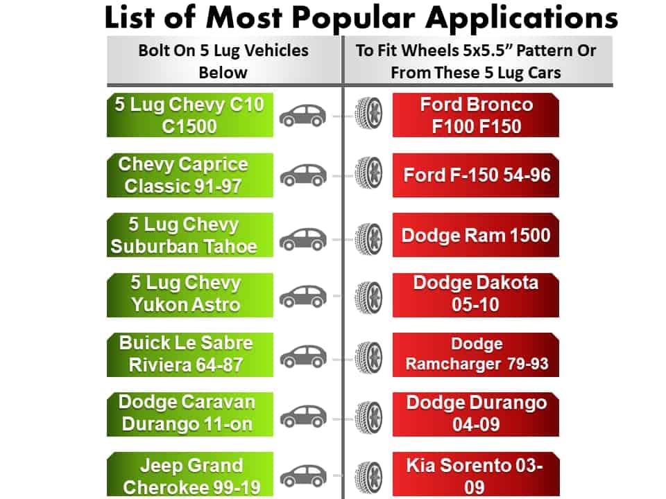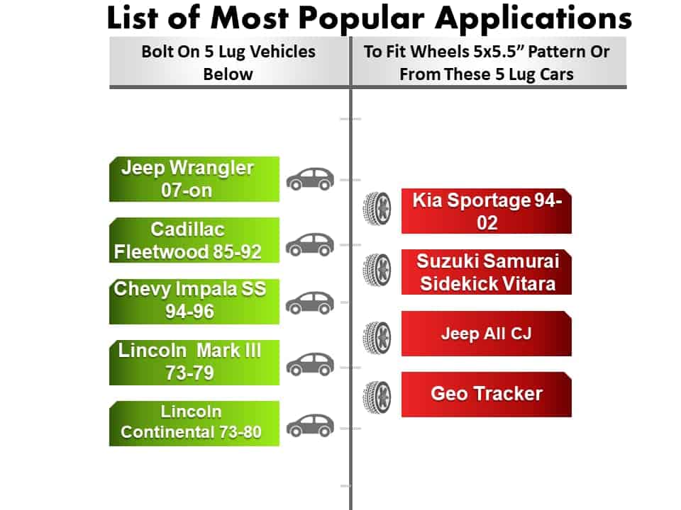 Patrón de Pernos Vehículo: 5×5″ (5x127mm)
