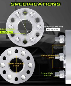 Adaptadores de Rueda Customadeonly 6×135 a 6×139.7 (Centro a Rueda) Separadores de 6×5.3 a 6×5.5 para F150 Centrico al Cubo tuerca M14x1.5 (2 piezas 2.0″ de Grosor) 87.1mm a 77.8mm Orificio del Centro. Estos adaptadores de rueda están diseñados para permitir que su vehículo utilice ruedas con patrón de pernos de 6×139.7 /6×5.5″ en lugar del patrón de pernos original de 6×135. Asegúrese de confirmar la adaptación y compatibilidad antes de la compra. El paquete incluye 2 separadores de rueda. Están hechos con aluminio de grado T-6 de alta calidad y mecanizados con precisión CNC para un ajuste perfecto. Los pernos de rueda de acero al carbono son prensados a máquina para una durabilidad excepcional. Se sugiere un ajuste de par de torsión de 95-100 lbs para una instalación segura y efectiva.