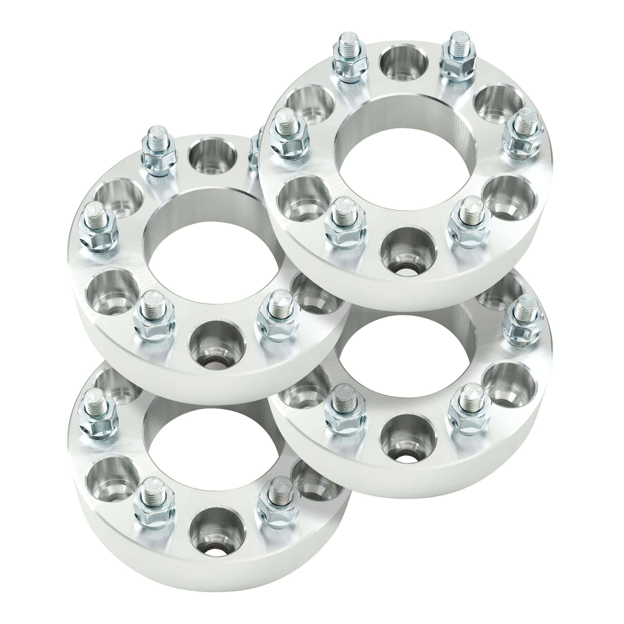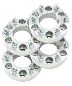 Anchura del espaciador: 32 mm (1.25 pulgadas) por cada lado. Cantidad: 4 Piezas. Patrón de pernos: Convierte tu cubo 6X114.3 (6X4.5″ a tu rueda 6X139.7 (6X5.5″). Centro: 72 mm. Paso de Rosca: 12mm X 1.5. Tipo de espaciador: Adaptador de conversión de patrón de pernos (céntrico de pernos). Este conjunto de espaciadores incluye tuercas de perno de extremo abierto para asegurar los espaciadores en tus cubos de fábrica. (Tu vehículo puede tener un tamaño de rosca diferente al suministrado con esta lista. Si el tamaño de rosca de fábrica es diferente de 12X1.5 – Deberás adquirir un conjunto de tuercas de perno de extremo abierto en el paso de rosca correcto (el paso de rosca de fábrica) para completar la instalación. La aplicación incorrecta de combinaciones de adaptadores de neumáticos / ruedas puede reducir la estabilidad del vehículo y causar accidentes y / o lesiones. El uso en cualquier vehículo con ruedas de tamaños o tipos no recomendados o especificados por el fabricante del vehículo está bajo el único riesgo del usuario y anula cualquier y todas las garantías expresas o implícitas (incluidas la comercialización y aptitud para un propósito particular). El uso de adaptadores / espaciadores de rueda queda a discreción del usuario. La responsabilidad se convierte en responsabilidad exclusiva del usuario. Excepto por la garantía limitada establecida en este documento, nuestra empresa no otorga ninguna otra garantía, expresa o implícita, con respecto a los productos y niega especialmente las garantías implícitas de comerciabilidad y aptitud para un propósito particular. En ningún caso nuestra empresa será responsable de daños directos, indirectos, punitivos, incidentales, especiales, consecuenciales, a la propiedad o a la vida, que surjan de o estén relacionados con el uso o mal uso de nuestros productos. Nuestra responsabilidad, si la hubiera, ya sea en contrato o en agravio o de otro modo, está limitada a la cantidad de ventas que realmente recibimos de usted.