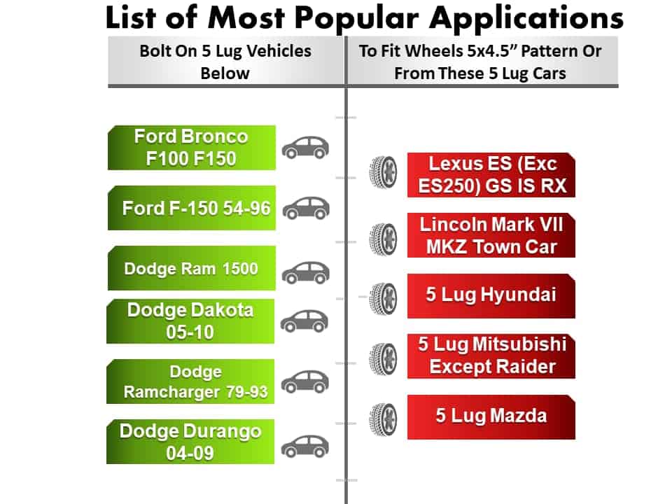 Patrón de Pernos de la Rueda: 5×4.5″ (5×114.3mm)