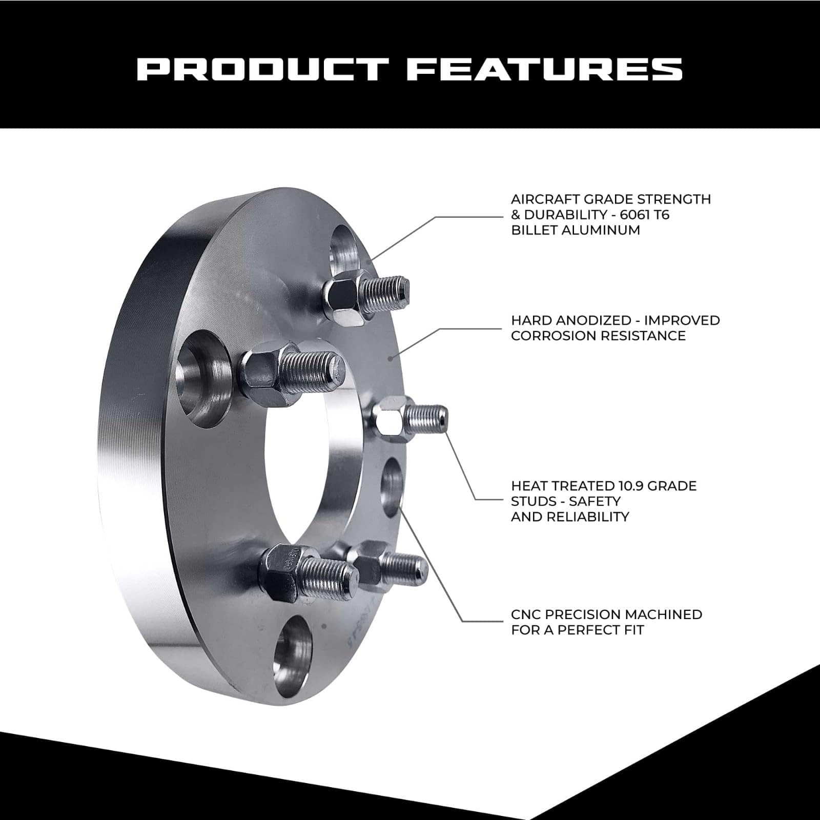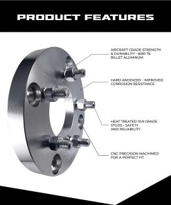 El juego de adaptadores de rueda para ATV se utiliza en cubos con patrón de perno de 4 pernos de 156mm para adaptar las ruedas con patrón de perno de 5 pernos de 4.5 pulgadas (114.3mm). Espaciarán tus ruedas en 1 pulgada para ayudarte a obtener suficiente separación para neumáticos y rines más anchos. Mecanizados por CNC con artesanía de precisión utilizando billet de aluminio de calidad aeronáutica 6061 T6, cuentan con alta capacidad de carga y resistencia a la corrosión. Los pernos de alta calidad están preinstalados y se incluyen pernos de montaje con rosca abierta de tamaño 3/8″-24. Se venden como un juego para 4 ruedas. Ordena 1 juego para las 4 ruedas. Especificación del adaptador: Patrón de perno del vehículo: 4x156mm Patrón de perno de la rueda: 5×114.3mm Tamaño de la rosca de los pernos: 1/2″ Tamaño del cubo de la maza: 82.5mm Grosor: 1 pulgada (25mm) Notas técnicas: Si los pernos de la maza sobresalen fuera del adaptador y evitan que las ruedas queden a ras, es necesario acortar los pernos de fábrica.