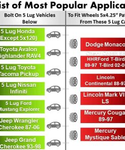 El juego de adaptadores de rueda se utiliza para convertir el patrón de pernos del cubo de 5 pernos y 4.5 pulgadas (114.3 mm) para adaptar ruedas con patrón de pernos de 5 pernos y 4.25″ (108 mm). También extenderán sus ruedas 1.25 pulgadas para obtener suficiente espacio para neumáticos y llantas más anchos. Mecanizados CNC con precisión artesanal utilizando billet de calidad aeronáutica 6061 T6, presentan una alta capacidad de carga y resistencia a la corrosión. Los pernos de alta calidad vienen preinstalados y las tuercas de rueda de extremo abierto de 1/2″-20 de tamaño de rosca están incluidas. Se venden en pares para 2 ruedas. Ordene 2 pares para las 4 ruedas.