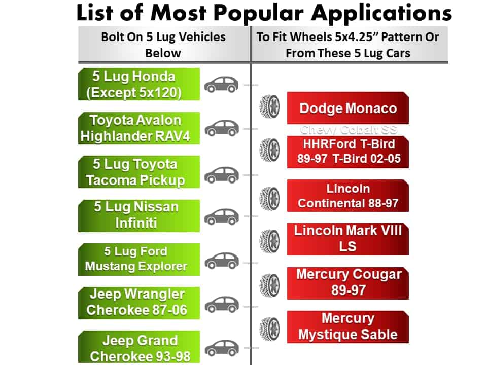 Patrón de Perno de la Rueda: 5×4.25 pulgadas (5x108mm)