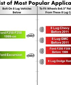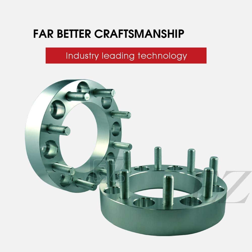El juego de adaptadores de rueda se utiliza para convertir el patrón de perno del cubo de 8 lug 170mm para que se ajuste a las ruedas con patrón de perno de 8 lug 6.5 pulgadas (165.1mm). También espaciarán tus ruedas 2 pulgadas para ayudarte a obtener suficiente espacio para neumáticos y llantas más anchos. Mecanizado CNC con mano de obra de precisión utilizando un billet de alta calidad para aeronaves 6061 T6, presentado en alta capacidad de carga y resistencia a la corrosión. Los pernos de alta calidad vienen preinstalados y se incluyen tuercas de perno de montaje abiertas de 14×1.5 tamaño de rosca. Este es un juego de 4 adaptadores para todas las 4 ruedas.