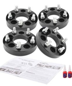 Especificaciones del Separador de Rueda Cantidad: Cuatro (4) Grosor: 1 pulgada (25.4 mm) Patrón de Pernos: 5×4.5 a 5×4.75 (5×114.3mm a 5×120.65mm) Centro de Buje: 73 mm Paso de Rosca del Perno/Tuerca: 1/2-20 Material: Aluminio de Grado Aeroespacial T6 con pernos de grado 12.9. PAQUETE INCLUYE 4 separadores de rueda centrados en el buje (1″ por unidad) 2 bloqueos de rosca de alta resistencia (rojo) 2 manual de usuario. Nota: Una caja de color incluye 2 separadores de rueda, 1 bloqueo de rosca y 1 manual de usuario. Función: Aumentar el espacio para ruedas más grandes o más anchas y mejorar las características de manejo/estabilidad y el espacio de freno. Dando a tu vehículo un aspecto más agresivo. INFORMACIÓN DE SEGURIDAD IMPORTANTE Nunca modifiques el separador de rueda/adaptador. Nunca quites los pernos de fábrica instalados en el separador de rueda/adaptador. Nunca uses una llave de impacto para la instalación del separador de rueda/adaptador. No apiles varios separadores/adaptadores en una sola rueda. Sigue cuidadosamente nuestras instrucciones de instalación incluidas en este paquete. El fabricante no asume responsabilidad alguna.