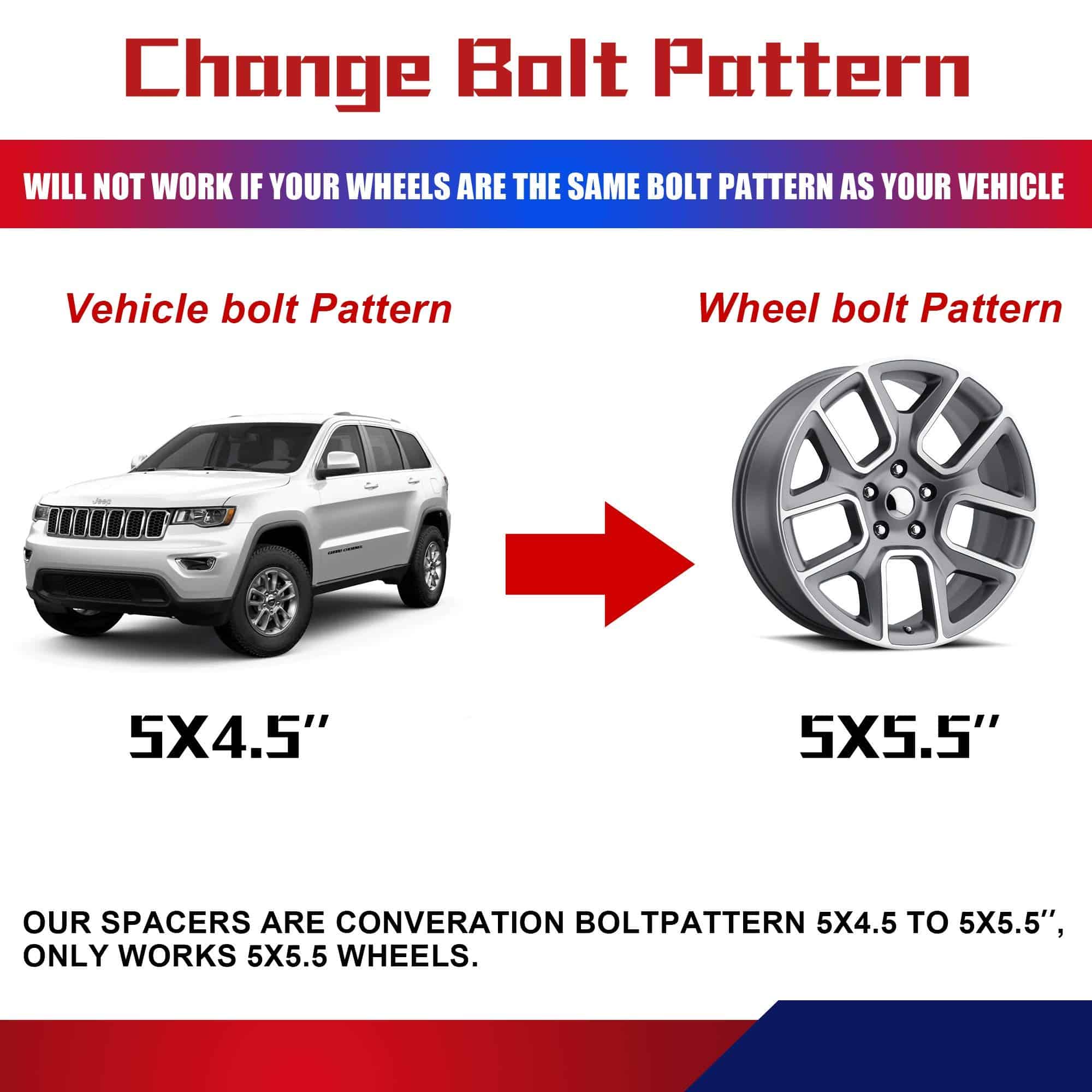 Adaptadores de Rueda FLYCLE 5×4.5 a 5×5.5, 1.5 pulgadas
