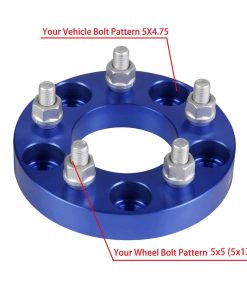 Especificaciones: Patrón de pernos del vehículo 5X4.75, patrón de pernos de la rueda 5X5 PCD, Paso de rosca M12x1.5 SAE, Buje de 74mm, 4 unidades de 1″ de grosor