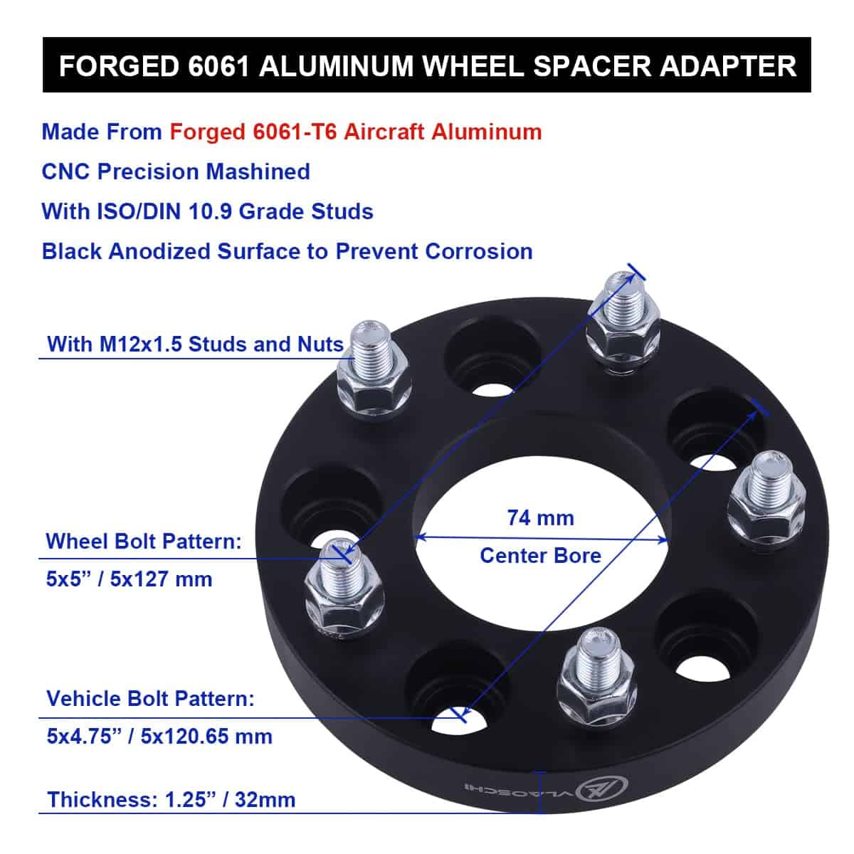 Adaptadores de Rueda Forjados Negros VLAOSCHI 5×4.75 a 5×5