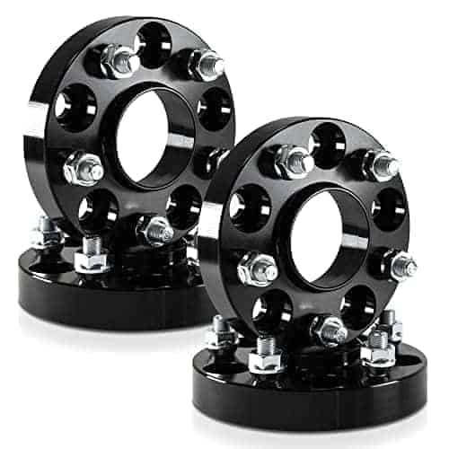 Ancho del espaciador: 25mm (1 pulgada) cada lado. Cantidad: 4 piezas. Patrón de pernos: Convierta el patrón de pernos 5X100 (cubo) a 5X114.3 o 5X4.5″ (rueda). Centro del agujero: 56.1mm. Paso de rosca: 12mm x 1.25. Anodizado en Negro. Tipo de espaciador: Adaptador de conversión de patrón de pernos (centrado en el cubo). Este juego de espaciadores incluye tuercas de rueda de extremo abierto para asegurar los espaciadores en los cubos de fábrica. Sus pernos de rueda de fábrica pueden sobresalir más allá de la superficie de los espaciadores de rueda. En este caso, deberá: 1) Acortar los pernos de fábrica 2) Las ruedas deben tener las ranuras abiertas entre los agujeros de montaje 3) Comprar un juego de pernos más cortos y reemplazarlos por los pernos de fábrica. La aplicación errónea de combinaciones de adaptadores de rueda/neumático puede reducir la estabilidad del vehículo y provocar accidentes o lesiones. El uso en cualquier vehículo de ruedas de tamaños o tipos no recomendados o especificados por el fabricante del vehículo es bajo su propio riesgo y anula cualquier garantía expresa o implícita; (incluyendo comerciabilidad y aptitud para un propósito particular). El uso de adaptadores/espaciadores de rueda es a discreción del usuario. La responsabilidad es responsabilidad exclusiva del usuario. Excepto por la garantía limitada establecida aquí, nuestra compañía no ofrece ninguna otra garantía, expresa o implícita, con respecto a los productos y rechaza expresamente las garantías implícitas de comerciabilidad y aptitud para un propósito particular. En ningún caso nuestra compañía será responsable por daños directos, indirectos, punitivos, incidentales, especiales, daños consecuentes, a la propiedad o la vida, que surjan de o estén relacionados con el uso o mal uso de nuestros productos. Nuestra responsabilidad, si la hay, ya sea en contrato o en agravio o de otra manera, se limita a la cantidad de ventas que realmente recibimos de usted.