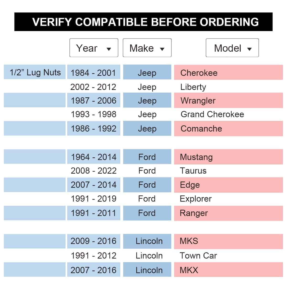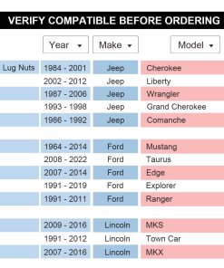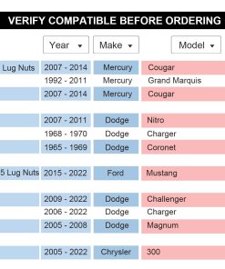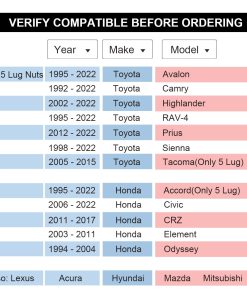 También se ajusta a otros vehículos de 5 espárragos con patrón de pernos de 5×114.3, 1/2″x20 o 12×1.5 o 14×1.5 espárragos