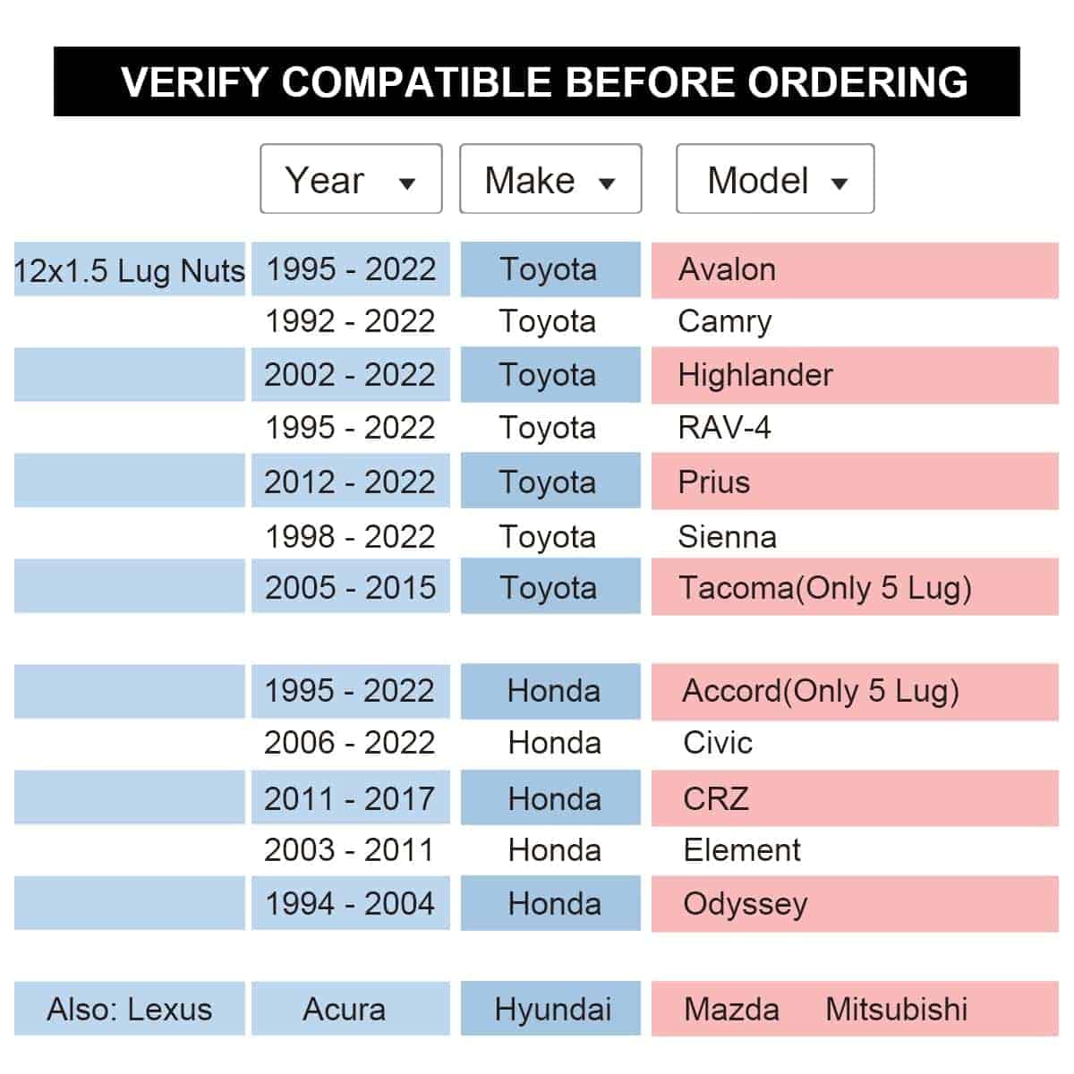 Compatible con Honda 1998-2022 Accord (Solo 5 espárragos)