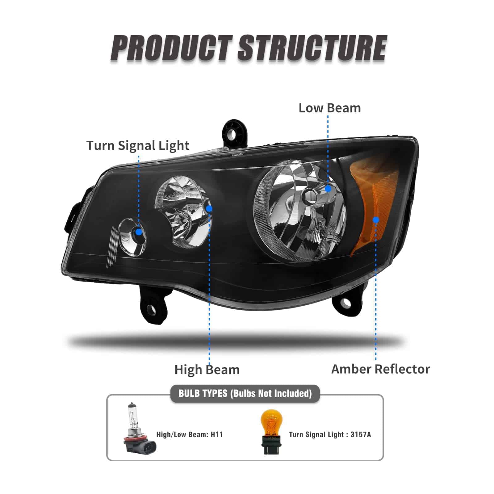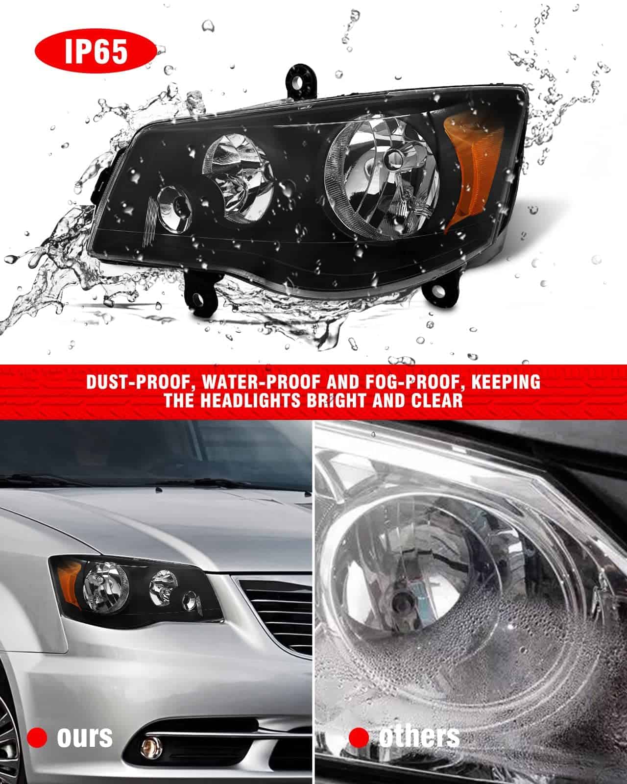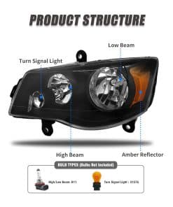 1. Ajuste 100% OE: Ajuste perfecto para modelos Dodge Grand Caravan 2011-2018, modelos Chrysler Town & Country 2008-2016 (No compatible con modelos de fábrica con faros proyector de Xenon HID), (No se ajustan a modelos 2009-2010 con faros de atenuación automática).