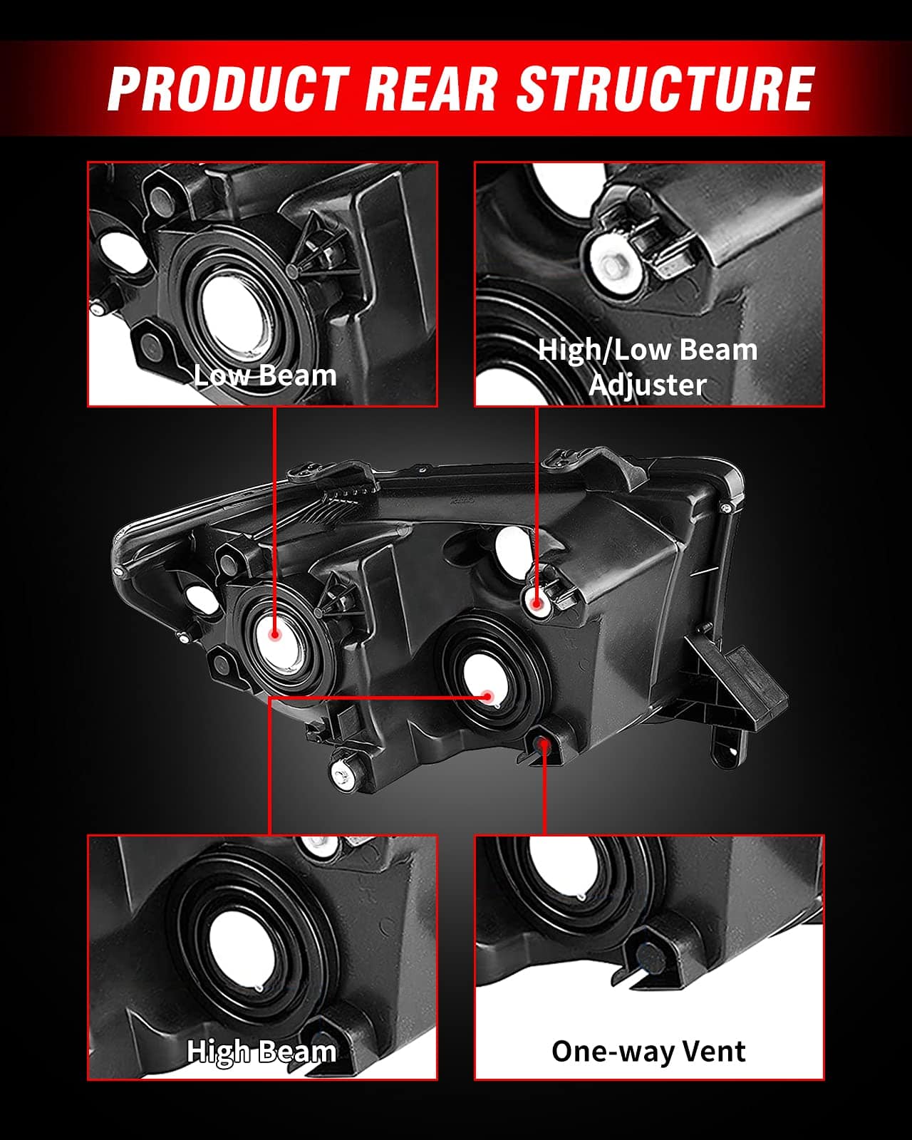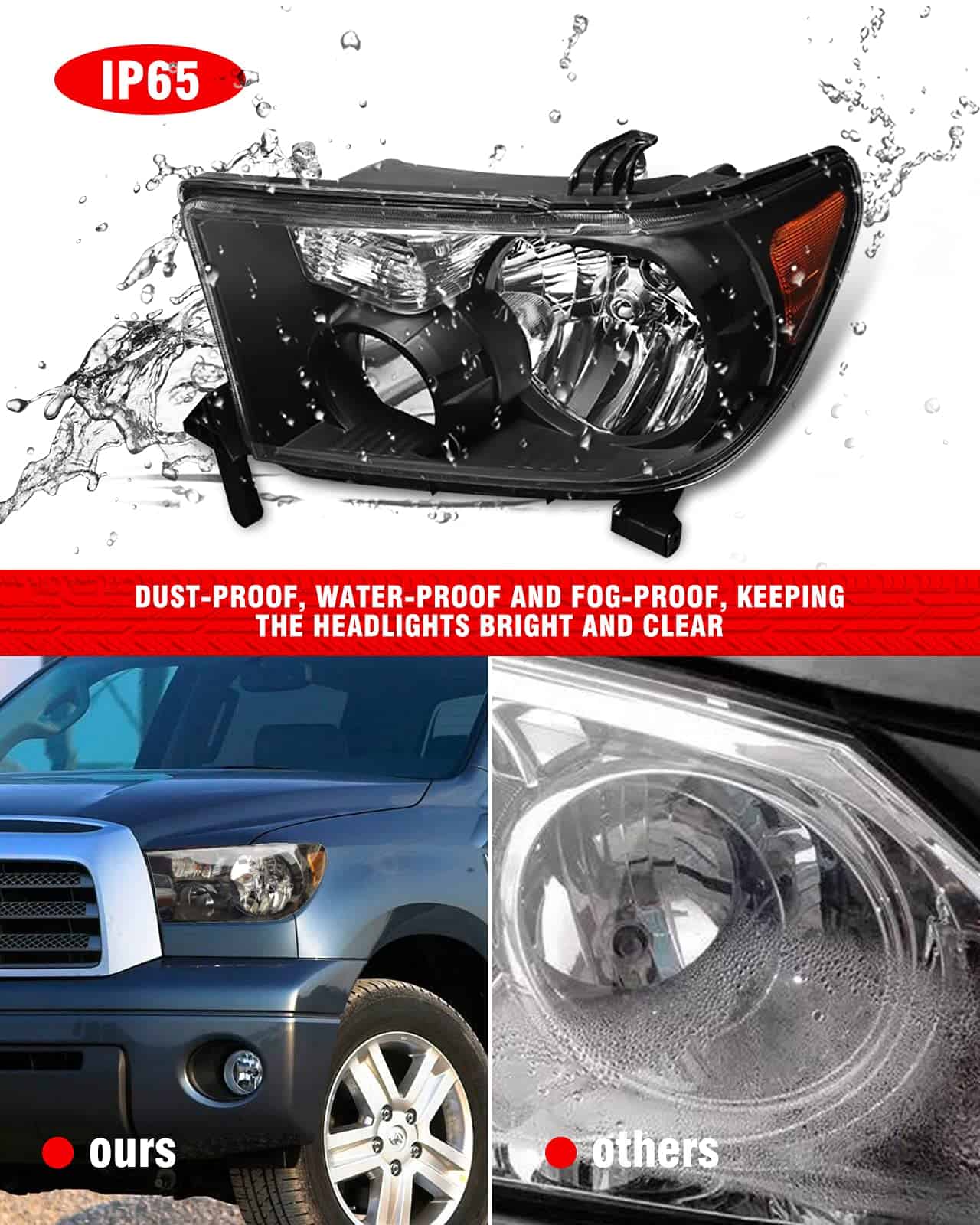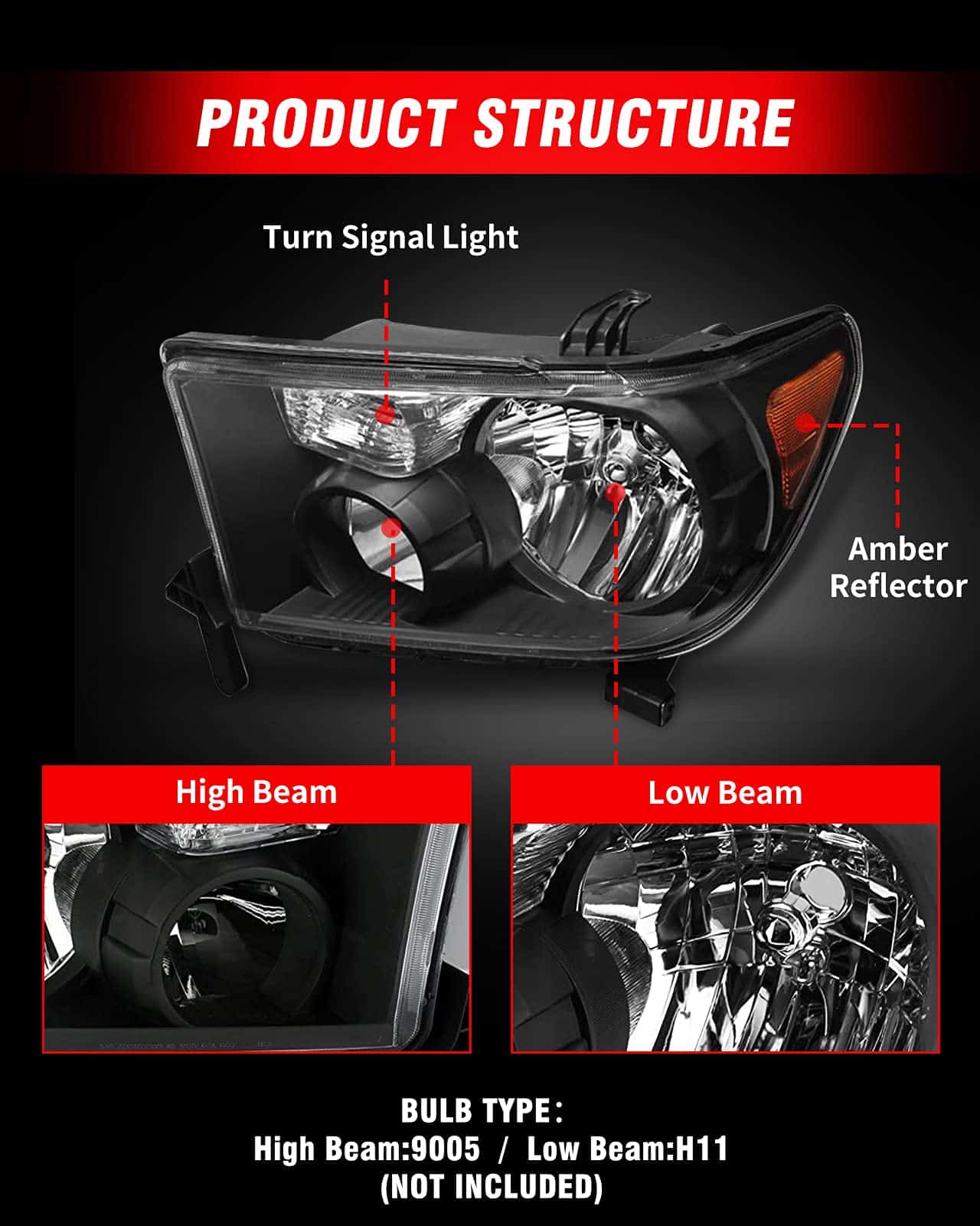 1. 100% Ajuste OE Ajuste perfecto para Toyota Tundra 2007 2008 2009 2010 2011 2012 2013 / Toyota Sequoia 2008-2017 (Compatible con faros halógenos de fábrica) (No adecuado para vehículos con función de ajuste eléctrico de faros).