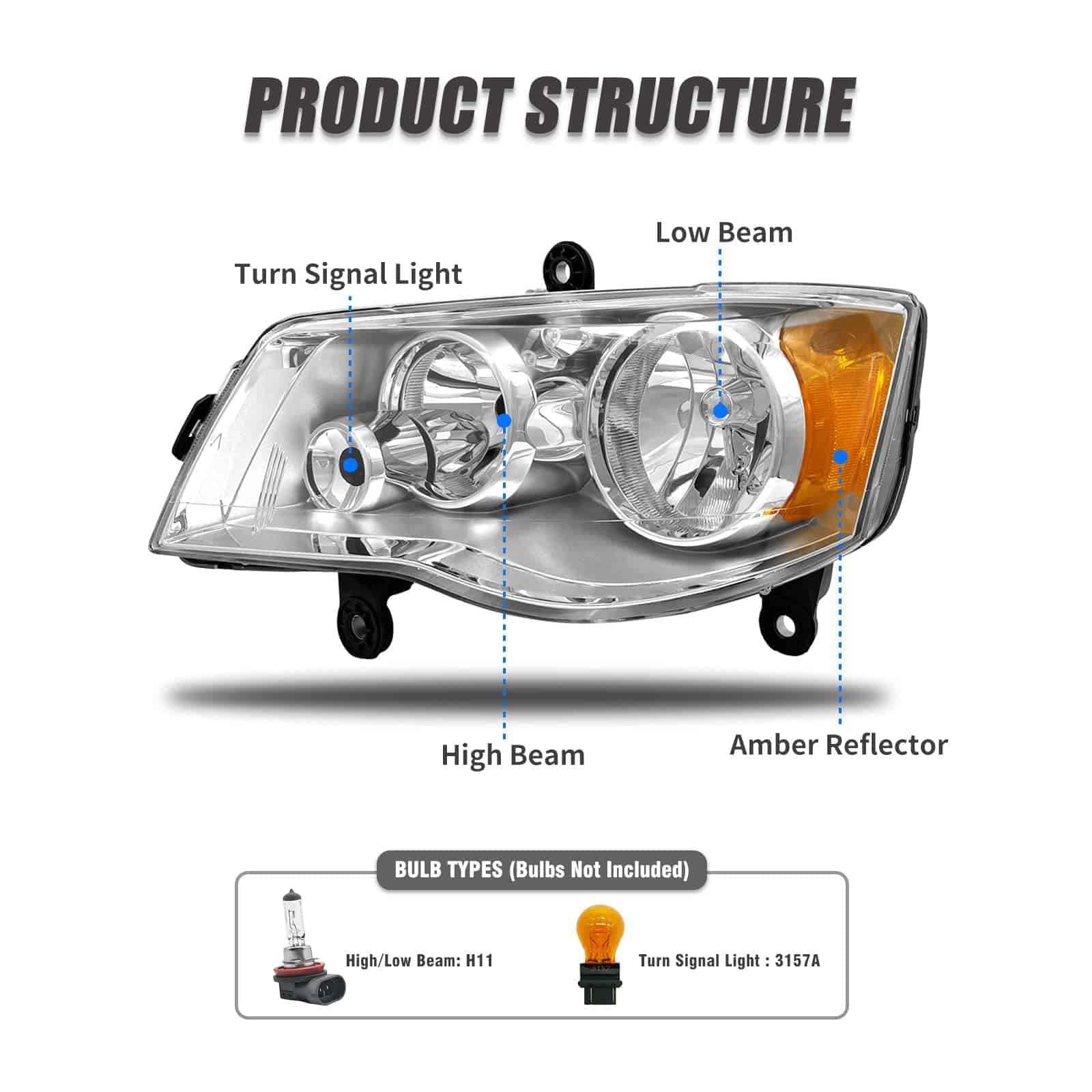 Dodge Grand Caravan 2011-2018 Chrysler Town & Country 2008-2016 (No apto para modelos con faros HID de fábrica) (No apto para modelos 2009-2010 con faros con atenuación automática)