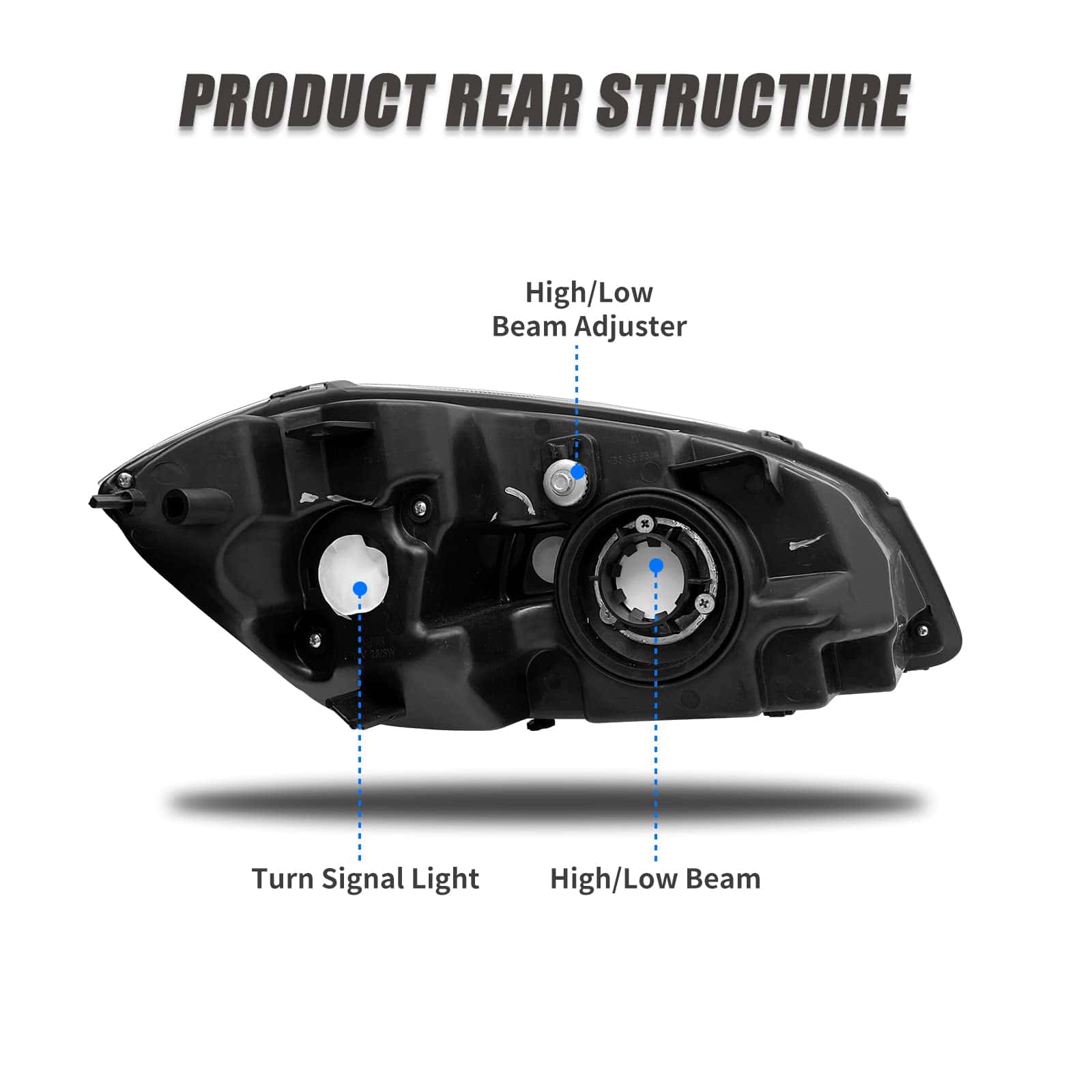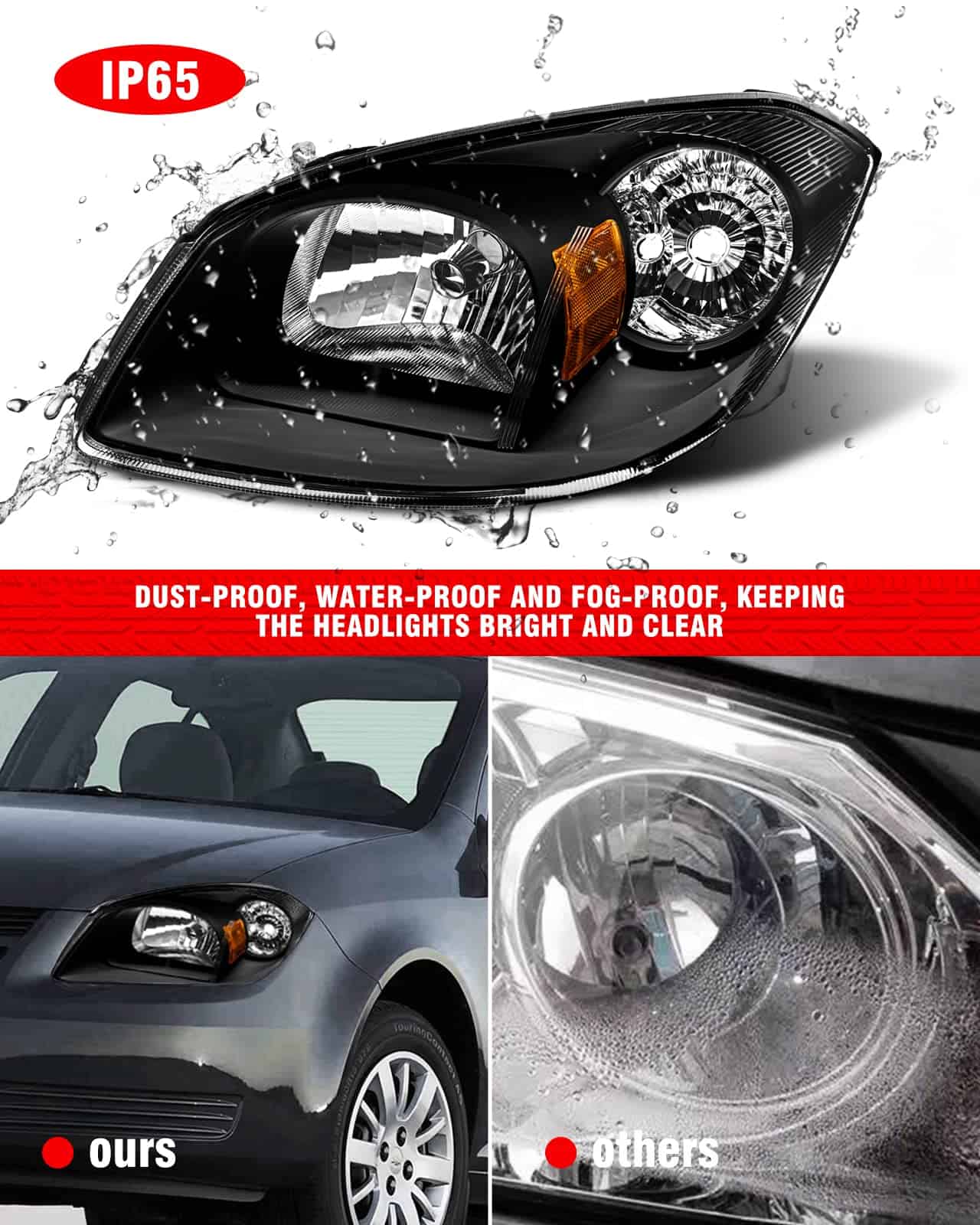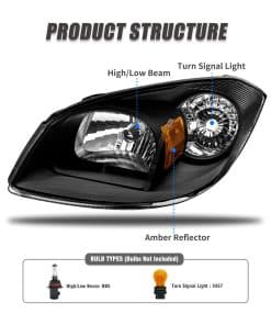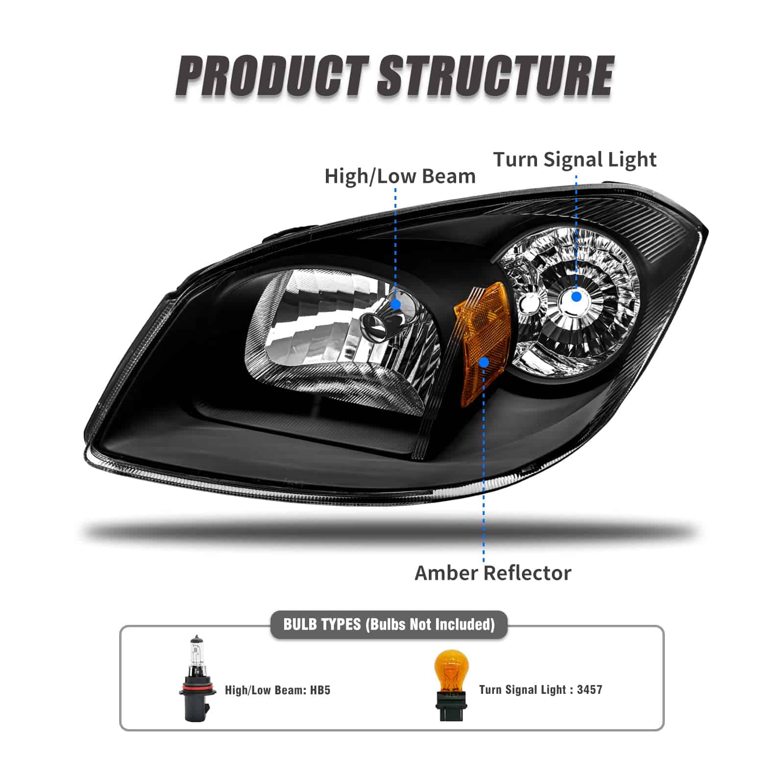 Es el momento de cambiar su conjunto de faros delanteros! ¿Por qué gastar tanto dinero en el taller de mantenimiento del automóvil? Solo necesita un par de faros nuevos y su automóvil volverá a verse como nuevo. Diseñado para ser compatible con Chevy Cobalt 2005 2006 2007 2008 2009 2010 / Pontiac Pursuit 2005 2006 / Pontiac G5 2007 2008 2009. Número de parte equivalente OEM: 22740620/22740621. Partslink: GM2502251/GM2503251. Condición: Nuevo. Color: Carcasa negra Reflector ámbar. Incluye: Lado del conductor y del pasajero. Certificaciones: DOT, SAE. Atención: Este producto no incluye bombillas. ¿Problemas y soluciones? 1. ¿Sus faros de automóvil se han oscurecido por la abrasión de los desechos del camino? 2. ¿Los faros de fábrica no son lo suficientemente brillantes? 3. ¿Los faros se han vuelto amarillentos y descoloridos por el sol y los elementos? Un faro antiguo, turbio, amarillento, dañado o que no funcione hace que conducir sea peligroso. Con un par de faros nuevos de ADCARLIGHTS, podrá ver más lejos por la carretera durante la noche y en cualquier mal tiempo que pueda surgir.