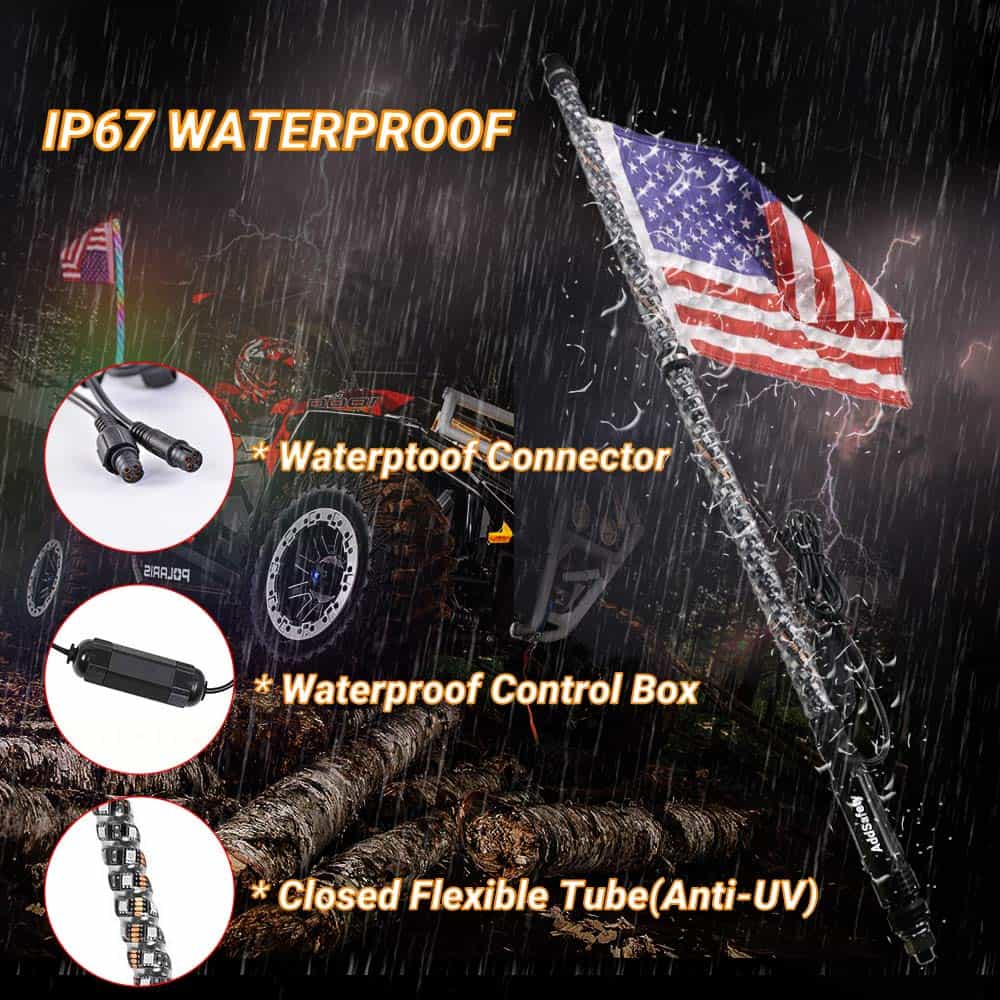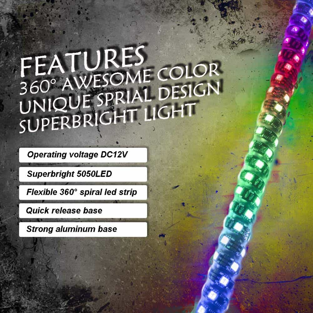DESCRIPCIÓN: Las Luces LED de Silbato AddSafety utilizan SMD5050 super brillantes, un tubo de plástico claro y duradero que cubre y protege los LED de diversas condiciones climáticas. CARACTERÍSTICAS: Luces de Silbato LED con Base de Liberación Rápida Negra. Tubo de plástico transparente para colores super brillantes y vibrantes. El tubo es más resistente que un tubo PC normal. Anillo en O suave en la base superior para amortiguar la presión. ESPECIFICACIONES: Voltaje de Operación: DC12V. LED: SMD 5050. Tubo: Tubo de Policarbonato flexible (flexible). Tamaño: 5FT/1.5m. Base: Base Negra con Liberación Rápida. Impermeable: IP67. Vida útil del LED: 50,000 horas. COMPATIBILIDAD: Típicamente usado para vehículos todo terreno como Buggies/Sand Rails, SxS, ATV/UTV, 4×4’s, Jeeps, Botes, ¡etc! INCLUYE: 2pcs x Luces de Silbato LED 3FT 2pcs x banderas de silbato 2pcs x corbata y tapa Sobre el servicio: ¡Compre con confianza, ofrecemos 1 AÑO de garantía en los artículos que confirmen ser defectos de fabricante. Cualquier pregunta, no dude en contactarnos, gracias!